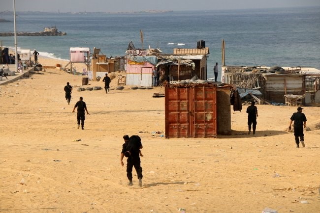 جهاز الشرطة البحرية على مستوى محافظات قطاع غزة، وهي تحاكي عملية استهداف مواقع عسكرية