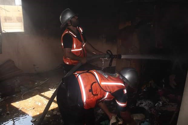 أخمدت طواقم الدفاع المدني،ظهر الثلاثاء، حريقا اندلع في شقة سكنية تعود لعائلة الديري بمنطقة الصبرة جنوب مدينة غزة..