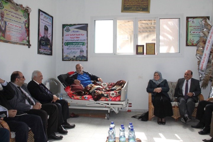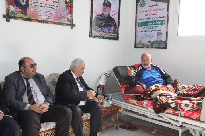 الداخلي، في منزله بالنصيرات ظهر أمس الأحد، وزراء حكومة التوافق في قطاع غزة مُهنئين