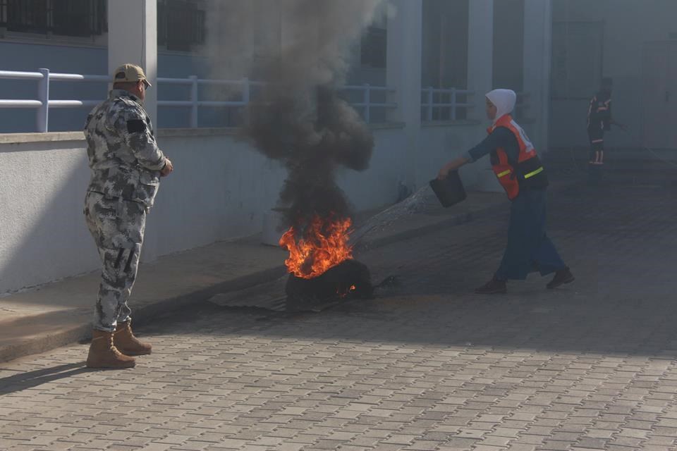 في الدفاع المدني أن طاقم التدريب نفـذ تمرين إخلاء لـ 700 من الطالبات والهيئة التدريسية