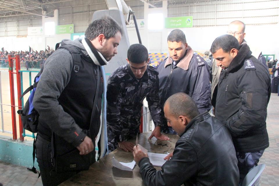 صالة أبو يوسف النجار قبل توجهم إلى الصالة الفلسطينية من معبر رفح، ومنها إلى الصالة