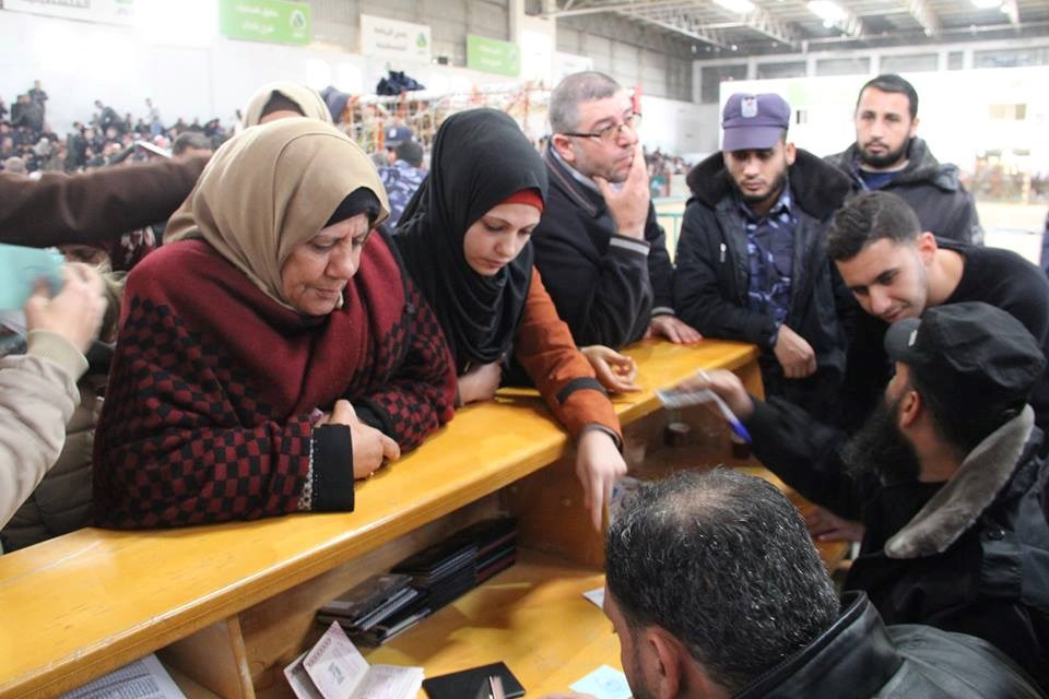 التي تُقِل المسافرين منذ ساعات صباح اليوم، في صالة الشهيد أبو يوسف النجار بمدينة