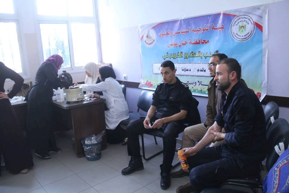 بخان يونس حملة تبرع بـ"الدم" لصالح جرحى انتفاضة القدس، وذلك بالتعاون مع