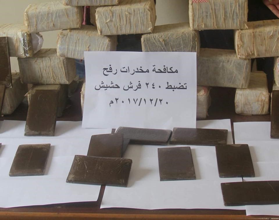 ضبطت الإدارة العامة لمكافحة المخدرات في الشرطة الفلسطينية بمحافظة رفح جنوب قطاع غزة 240 فرش حشيش خلال مهمة شمال المحافظة.