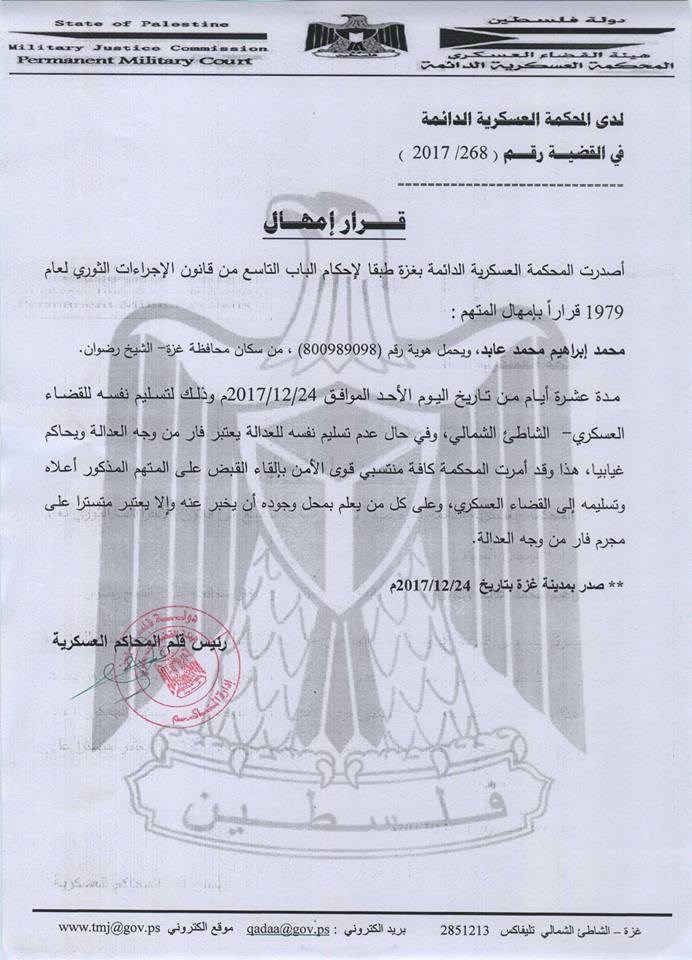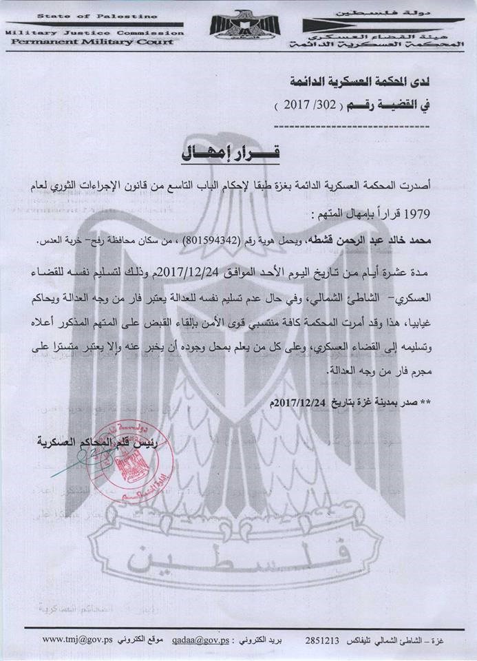 24/12/2017لتسليم أنفسهم للقضاء العسكري.