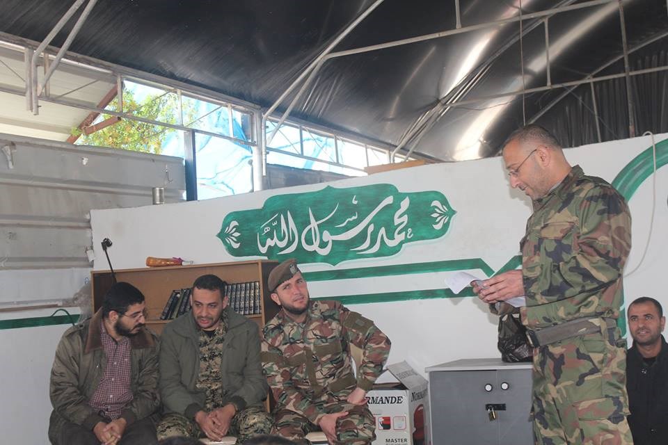 شحادة مدير دائرة الإرشاد الديني والرائد أحمد الكتوت قائد الكتيبة السادسة وضباط وأفراد