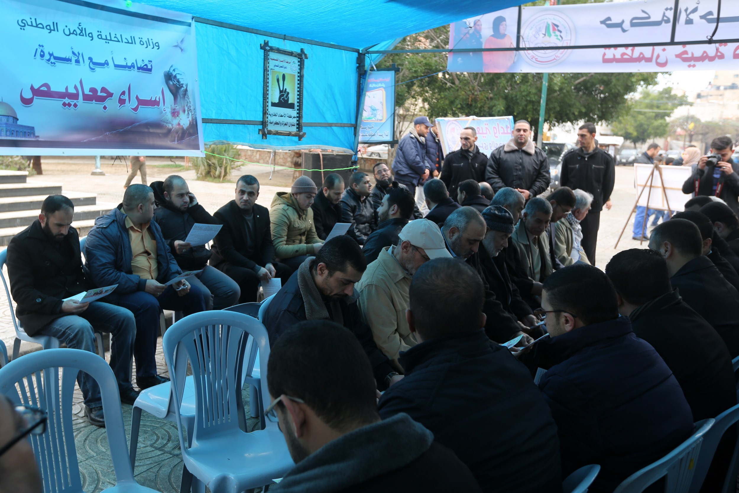 في الوقفة التضامنية مع الأسيرة الجعابيص، كلٌ من جهاز الشرطة الفلسطينية والأمن
