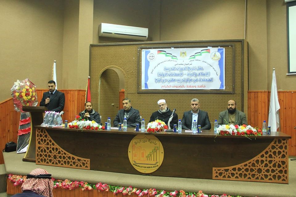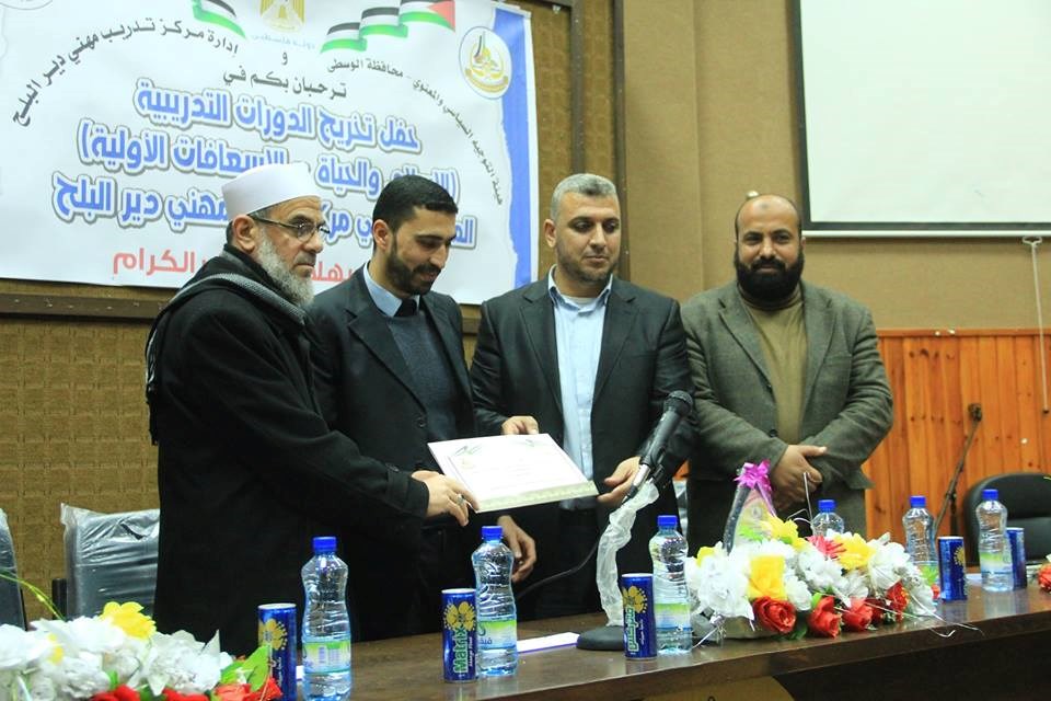 في المحافظة الوسطى وإدارة مركز تدريب مهني دير البلح حفل تخريج 70 طالب للدورات التدريبية