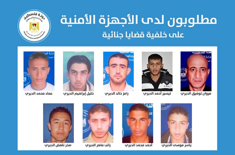 أسماء وصور تسعة مطلوبين لديها على خلفية عدد من القضايا الجنائية في قطاع غزة خلال