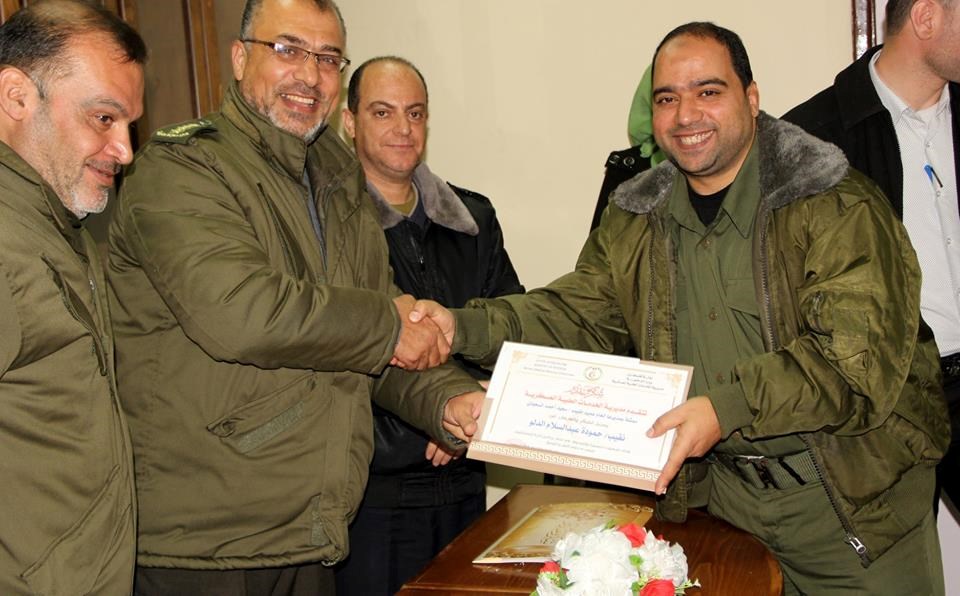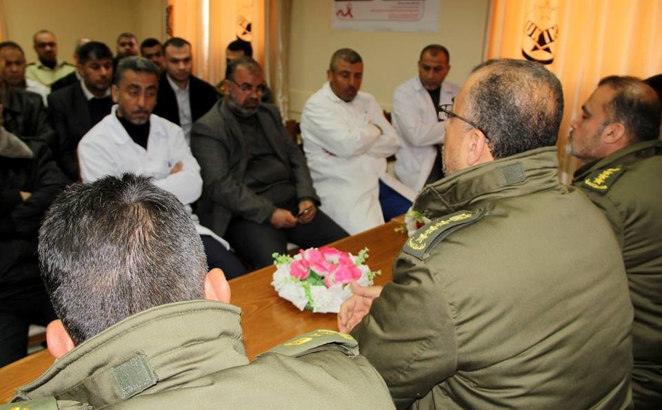 عبد الجواد ومدير مجمع عدوان العقيد أحمد الكحلوت ولفيف من الأطباء والإداريين في عدوان