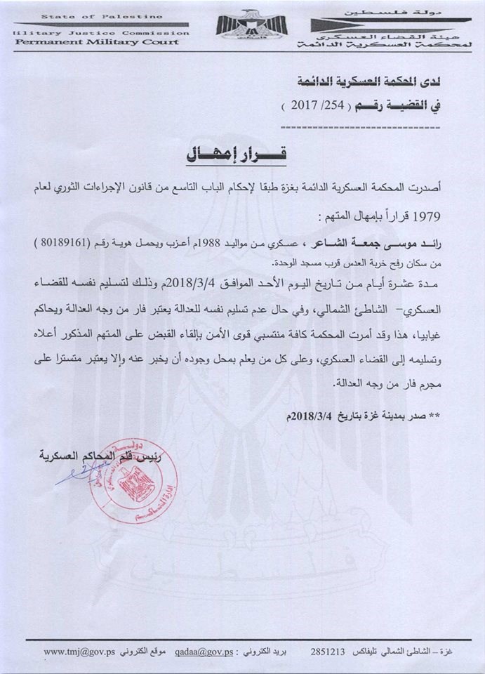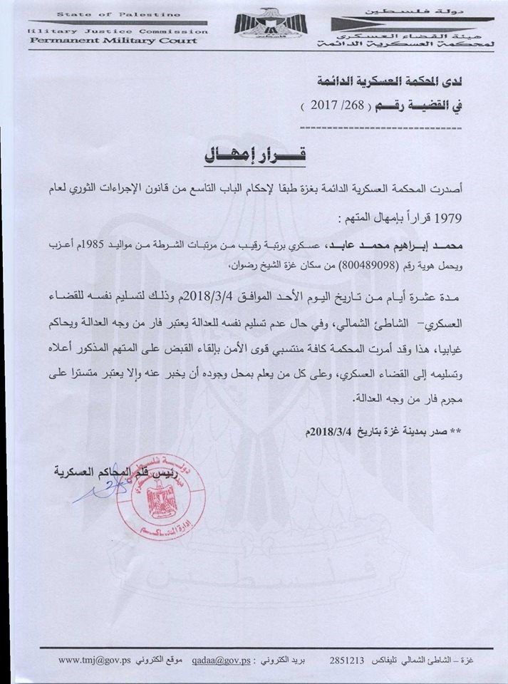4/3/2018لتسليم أنفسهم للقضاء العسكري.