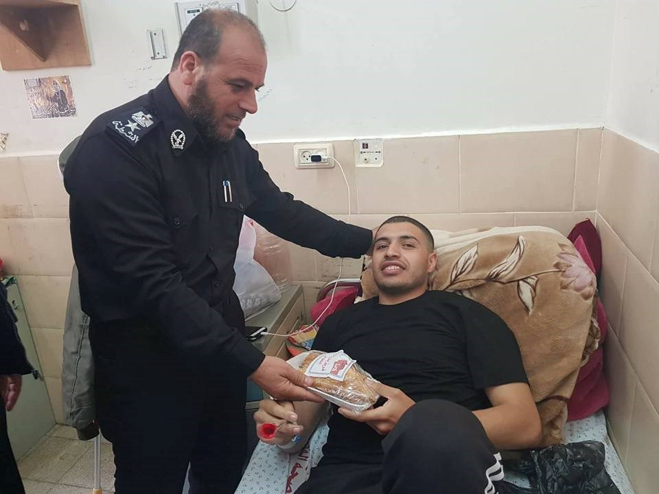 نظمت دائرة العلاقات العامة في شرطة محافظة رفح ممثلة بمديرها المقدم حجاج و الجبالي وعدد من الضباط زيارة لمستشفي الشهيد أبو يوسف النجار وذلك للإطمئنان على الجرحى والذين أصيبوا برصاص الاحتلال الجمعة الماضية ، أثناء مشاركتهم في مسيرة العودة الكبرى شرق رفح وتهنئتهم بالسلامة.