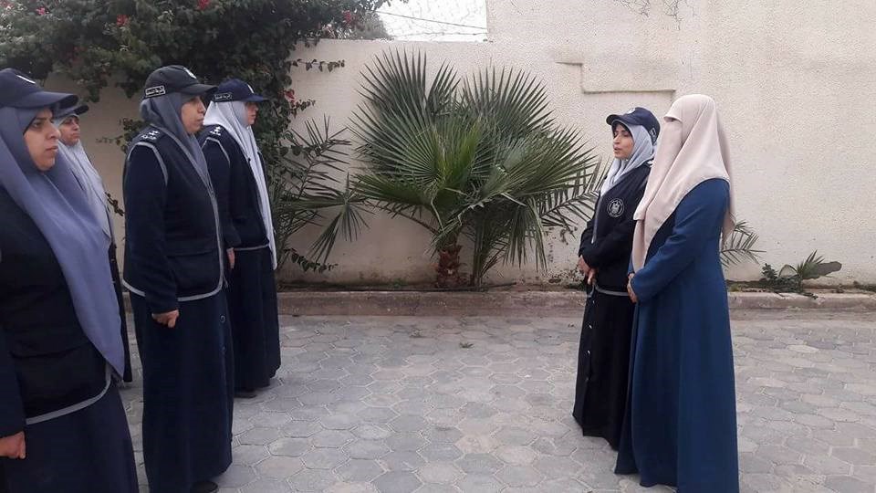 الشرطة النسائية في محافظة رفح طابور أركان لضباطها وأفرادها، وذلك في مركز الشرطة