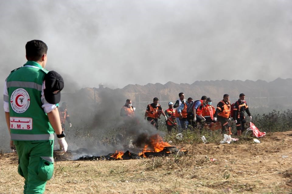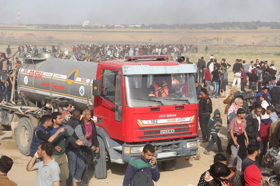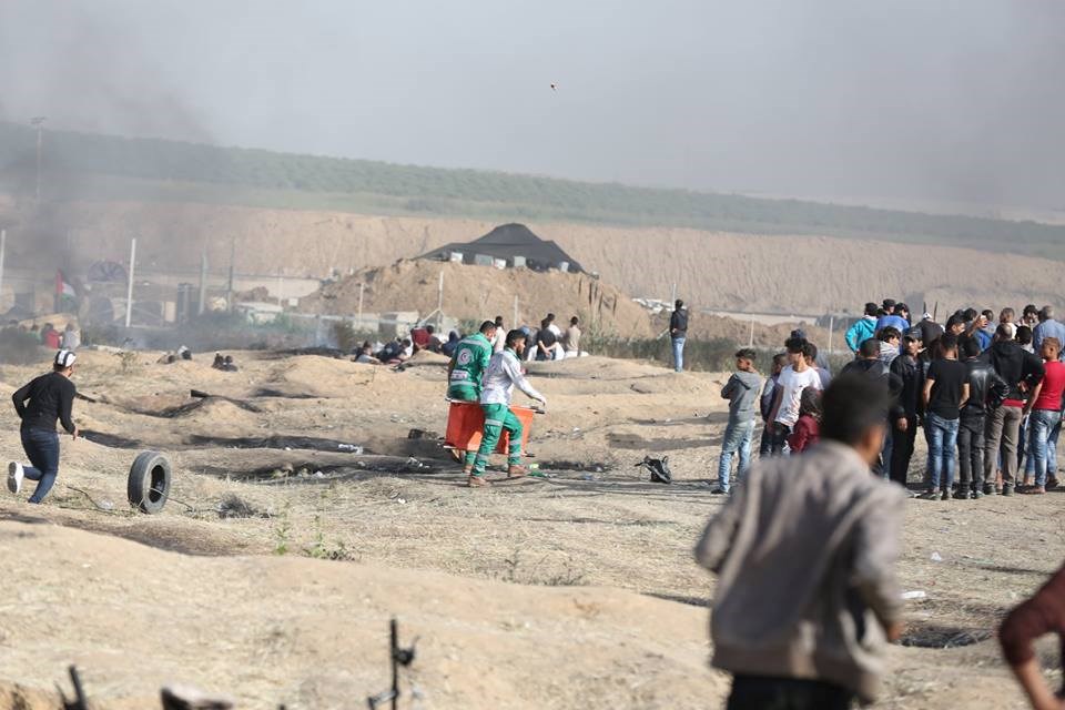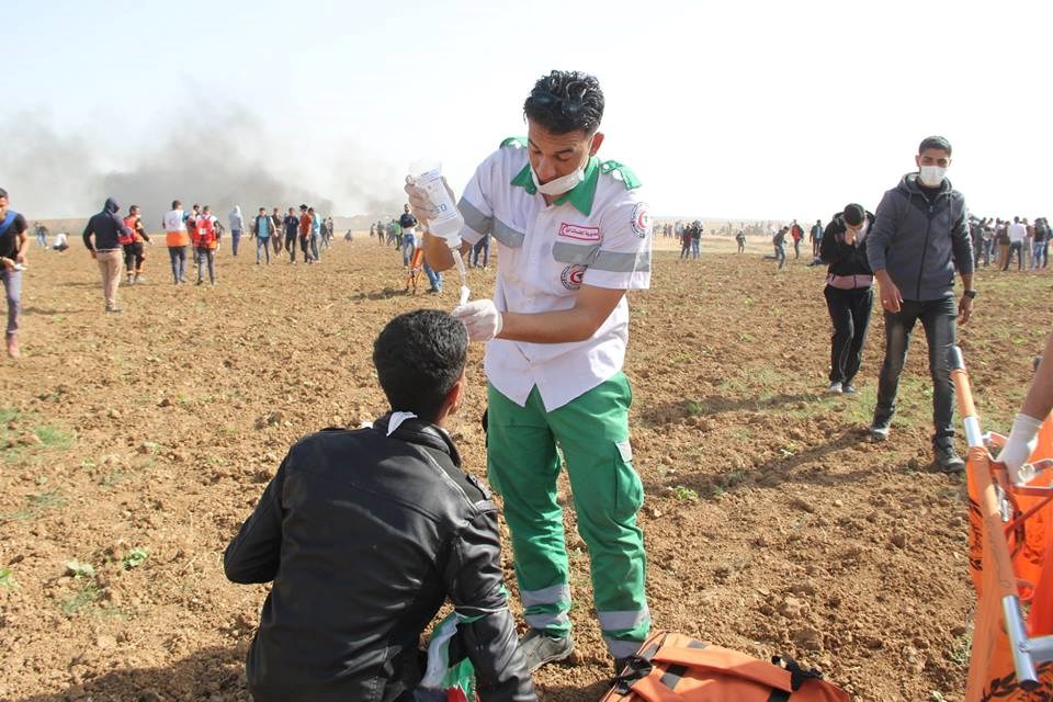 وعلاج المصابين شرق رفح وخانيونس، كما وإصيب ثلاثة كوادر من طواقم الدفاع المدني الميدانية باختناق حاد في محافظة شمال قطاع غزة.