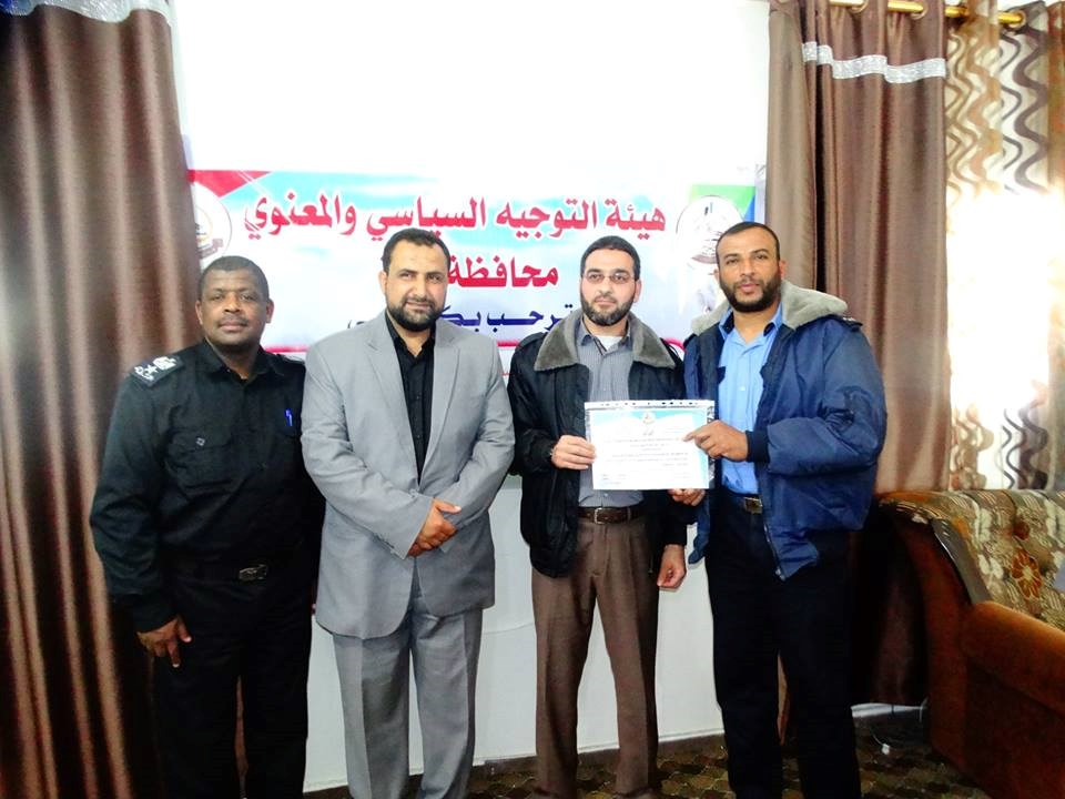 توجيه غزة، والمقدم غسان الرواغ مدير المركز، ومدرس الدورة الرائد أسامة سويدان.