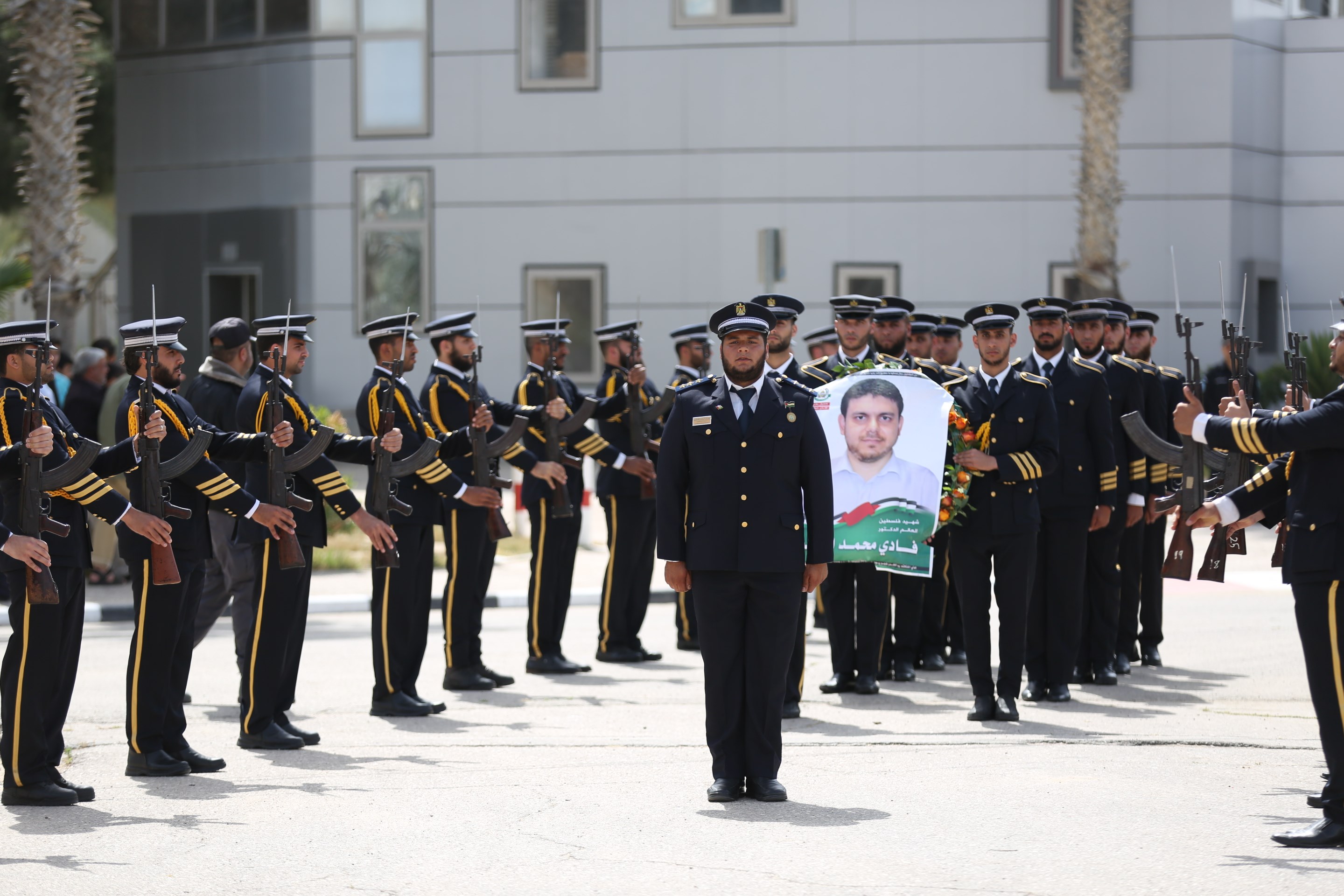 مراسم استقبال جثمان الشهيد البطش عرض لحرس الشرف وموكب عسكري بمشاركة الأجهزة الأمنية