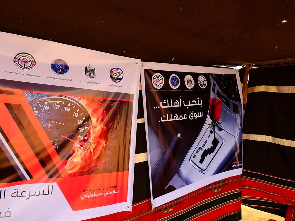 لشرطة المرور وإلقاء بعض الأبيات الشعرية التي تستهدف يوم المرور العالمي، وتوزيع برشورات