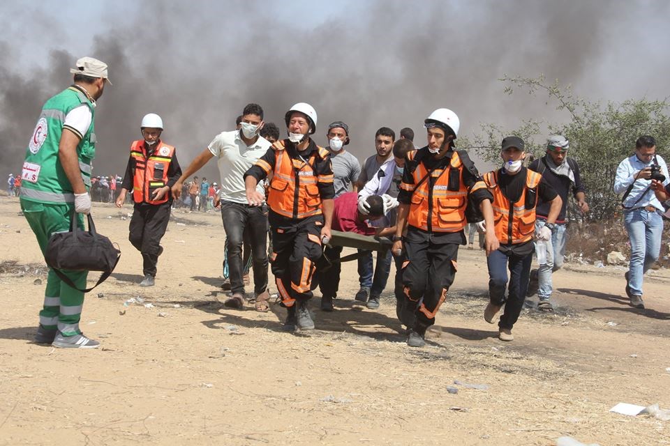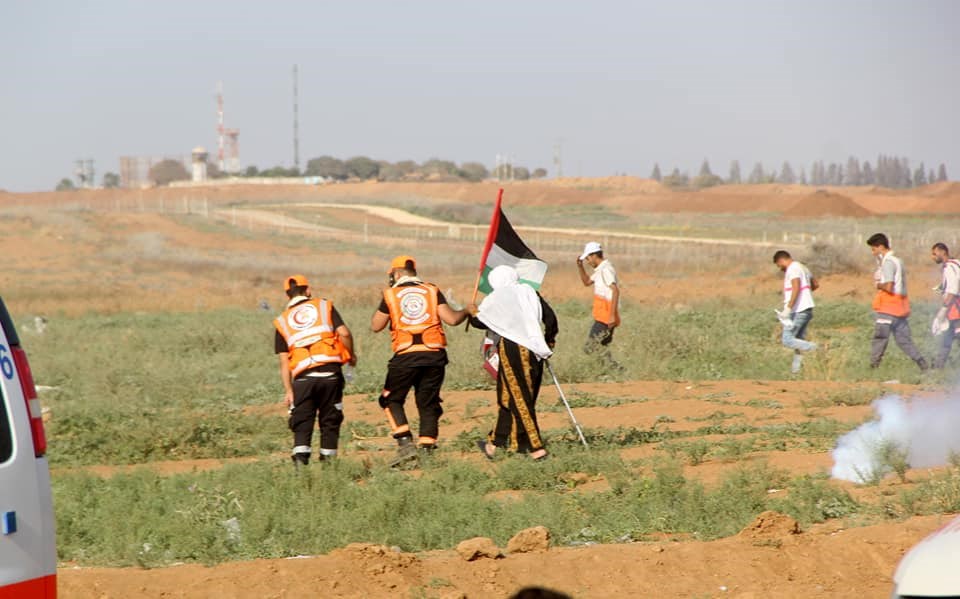 ضمن مسيرات العودة الكبرى على حدود قطاع غزة.