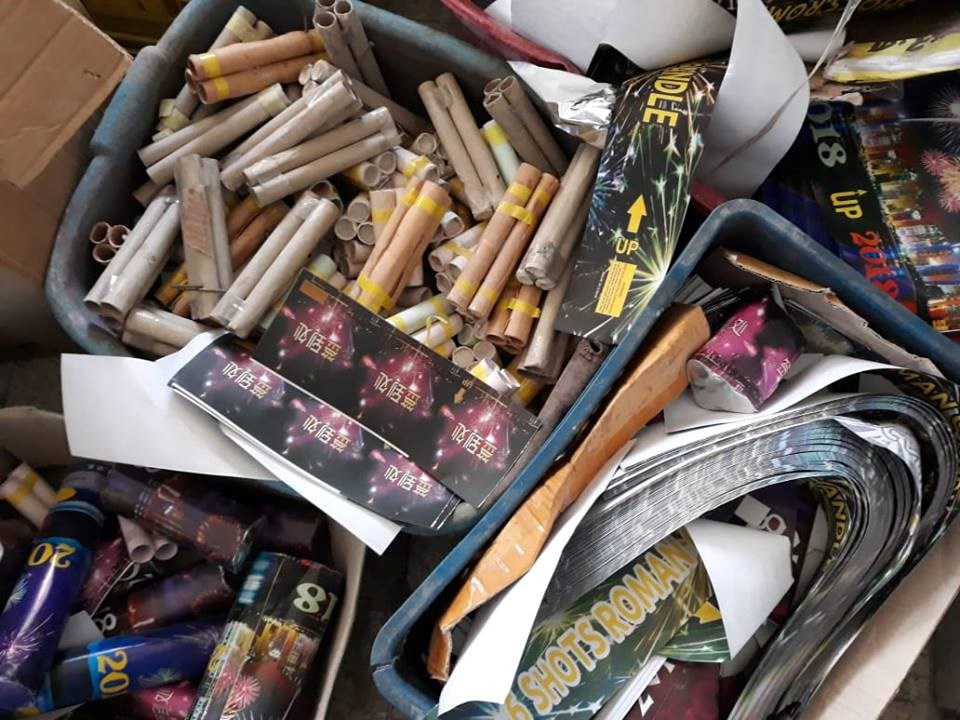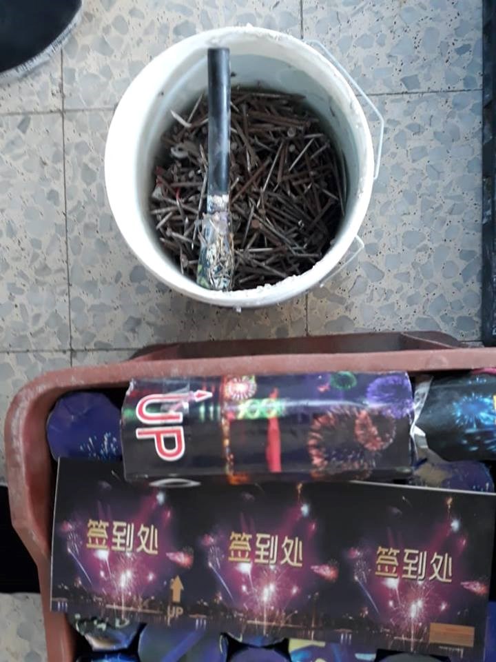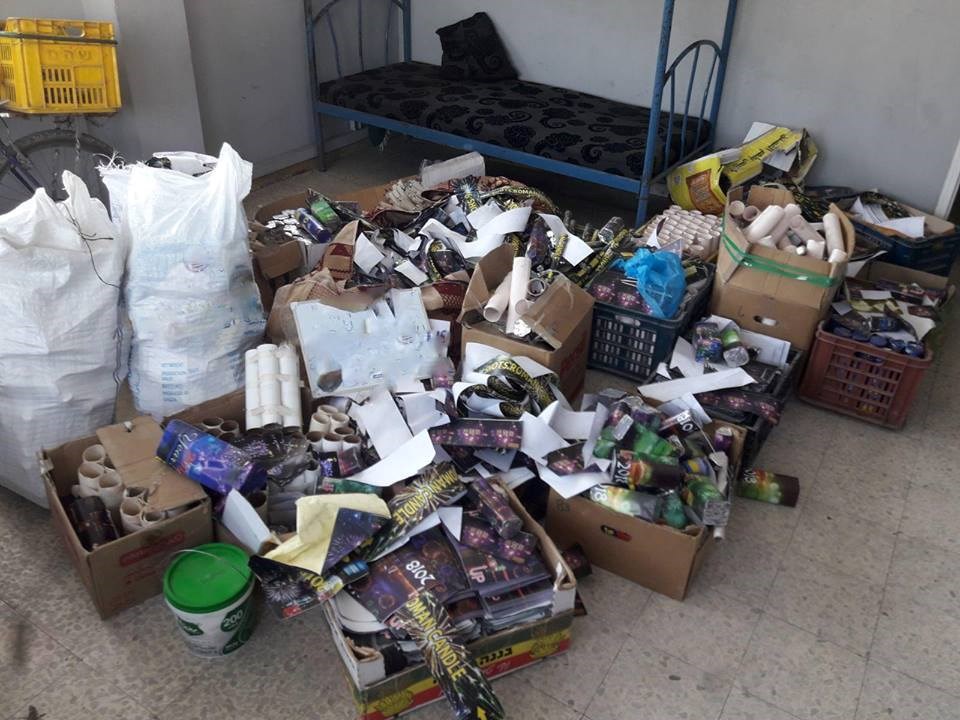 شرطة محافظة غزة كمية كبيرة من المواد المستخدمة في تصنيع الألعاب النارية خلال جولات