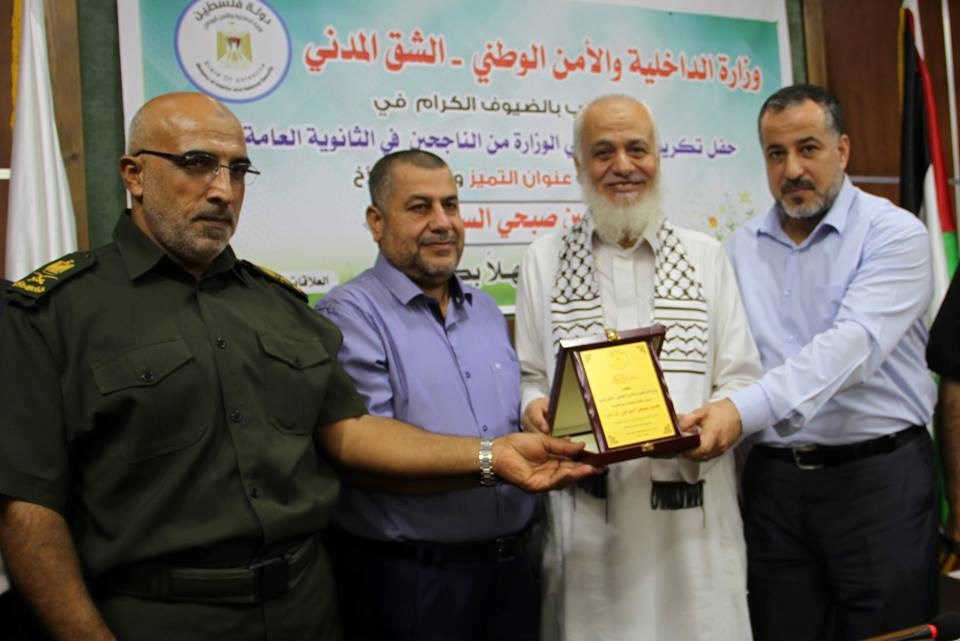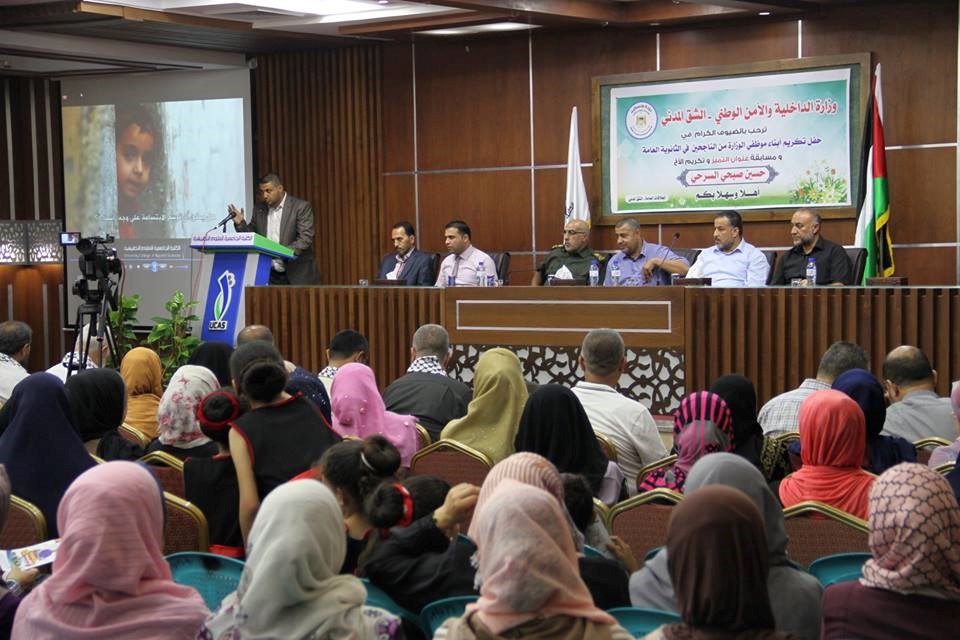 حفل التكريم كلٌ من ماهر أبو صبحة وكيل وزارة الداخلية المساعد، وعاهد حمادة وكيل وزارة