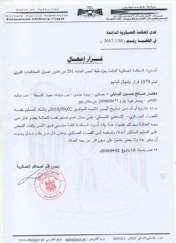 الموافق 2/9/2018لتسليم أنفسهم للقضاء العسكري.