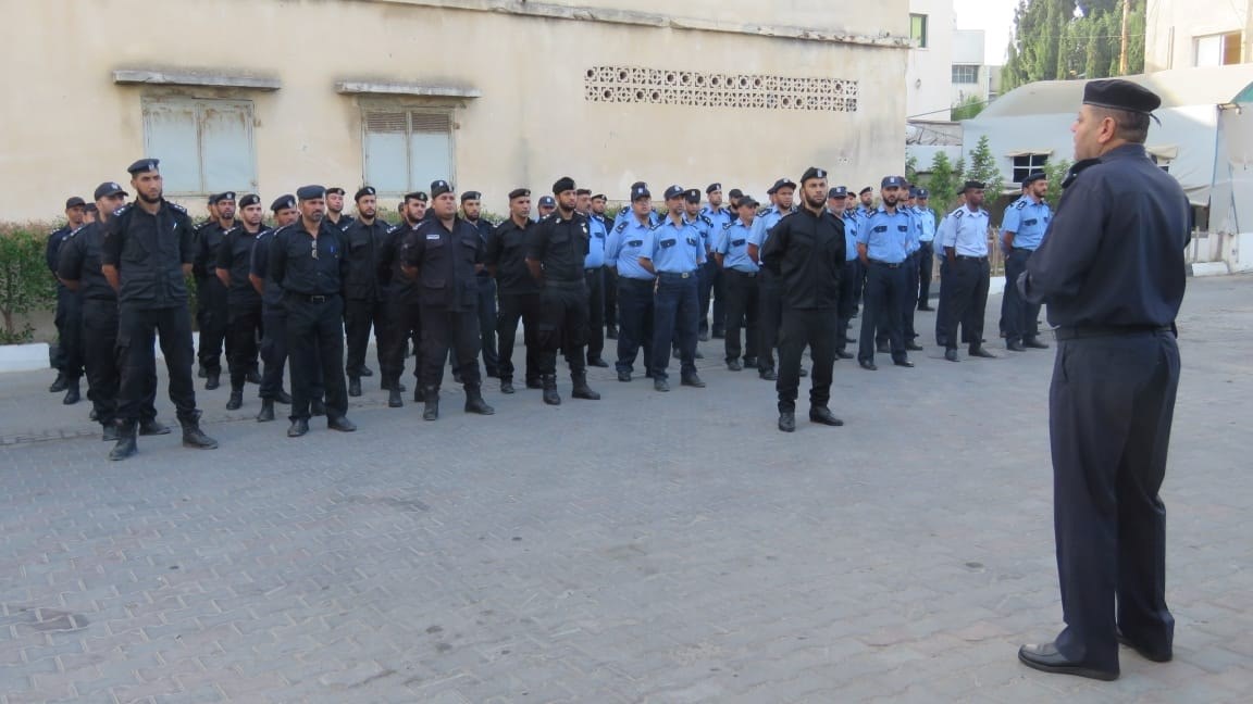 نظم مركز شرطة دير البلح في المحافظة الوسطى طابور أركان لجميع قواته بحضور نائب مدير الشرطة لشئون المحافظات العميد محمد أبو زايد.