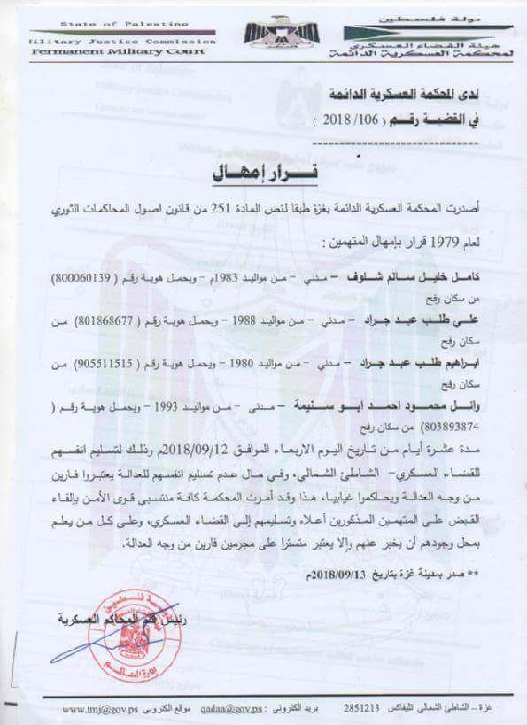 12/9/2018 لتسليم انفسهم للقضاء العسكري.