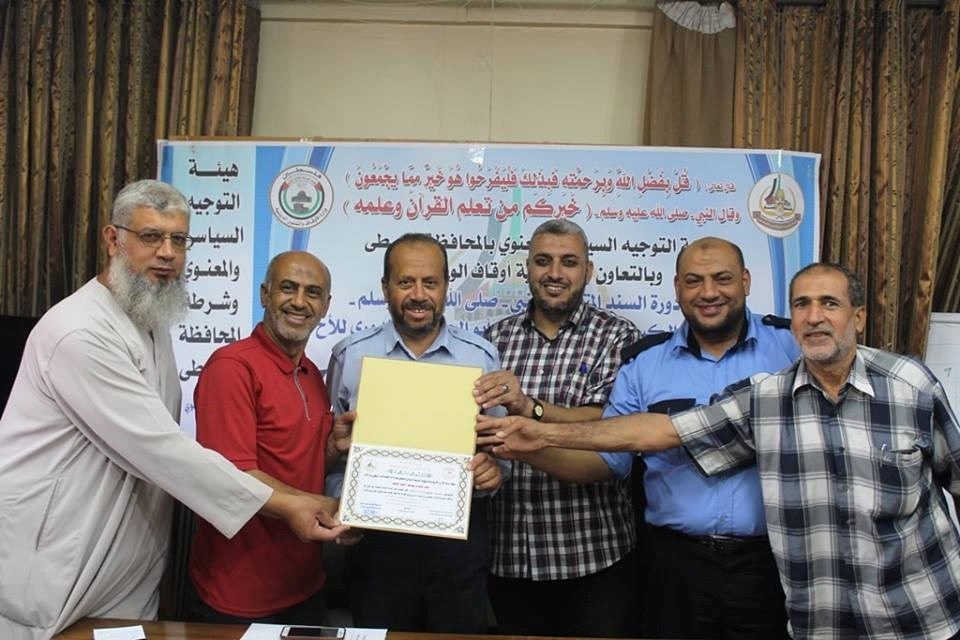 وفي سياق منفصل، اختتمت هيئة التوجيه السياسي والمعنوي في المحافظة الوسطى دورة أحكام بالسند المتصل بالنبي "صل الله عليه و سلم" بقراءة الإمام الكسائي براويية أبو الحارث و الدوري، للرائد عبد السلام الجمل من شرطة الحراسات .