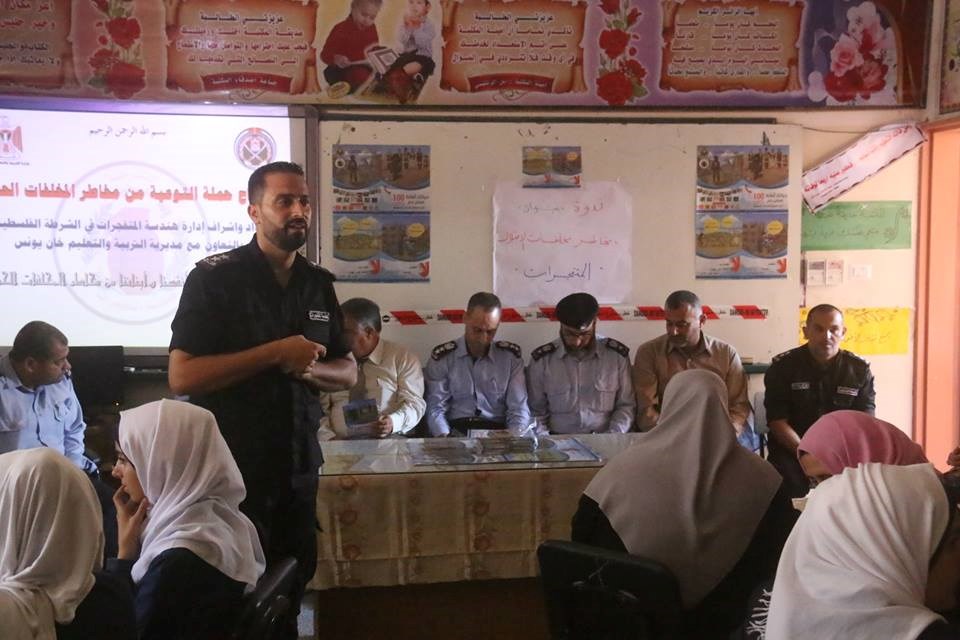 أطلقت الادارة العامة لشرطة هندسة المتفجرات في محافظة خان يونس وبالتعاون مع مديرية التربية والتعليم حملة توعوية وإرشادية للتحذير من مخاطر الأجسام المشبوهة تستهدف طلبة المدارس من الفئات كافة.
