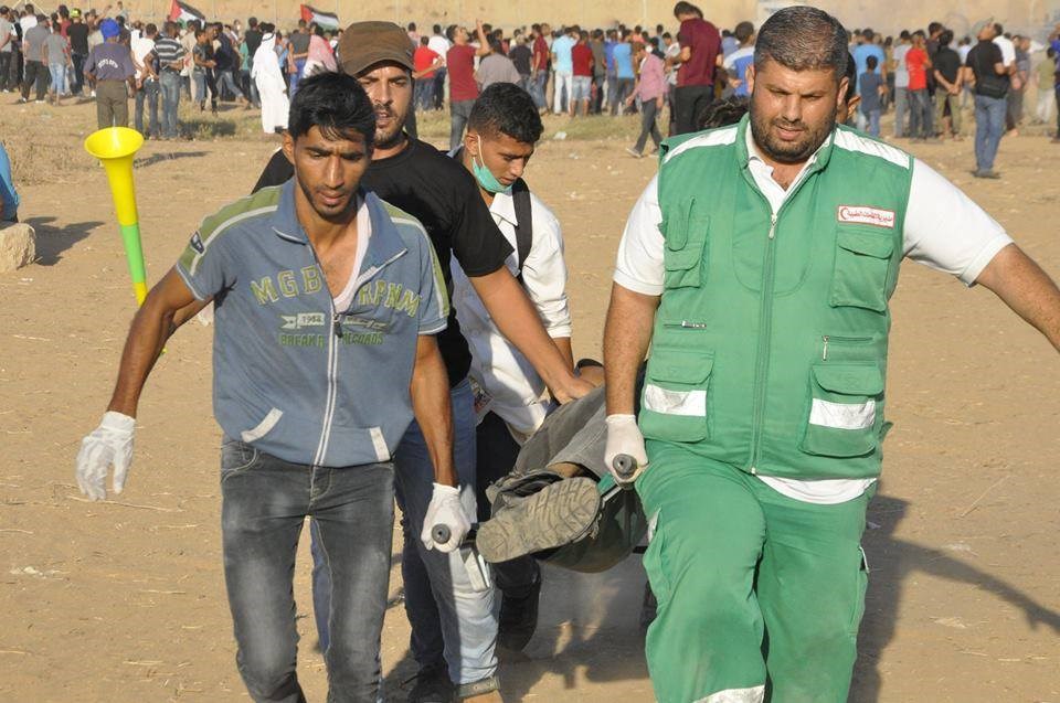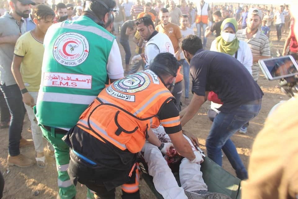 وذكر تقرير صادر عن المديرية أن المسعف "عبد أبو البيض" أصيب بطلق ناري في الفخذ، برصاص الاحتلال شرق مدينة غزة، في حين أصيب المسعف "يوسف المقيد" بالاختناق من جراء بقنبلة غاز المسيل للدموع، حيث تم نقلهما للمستشفى لتلقي العلاج اللازم.