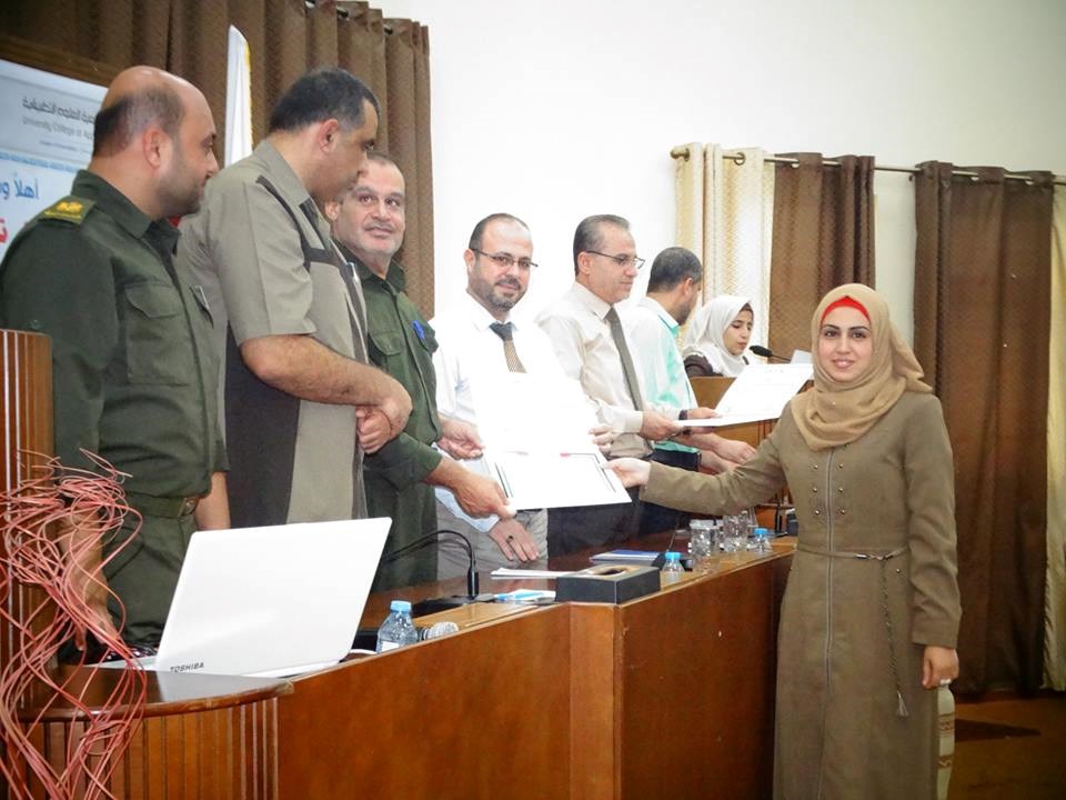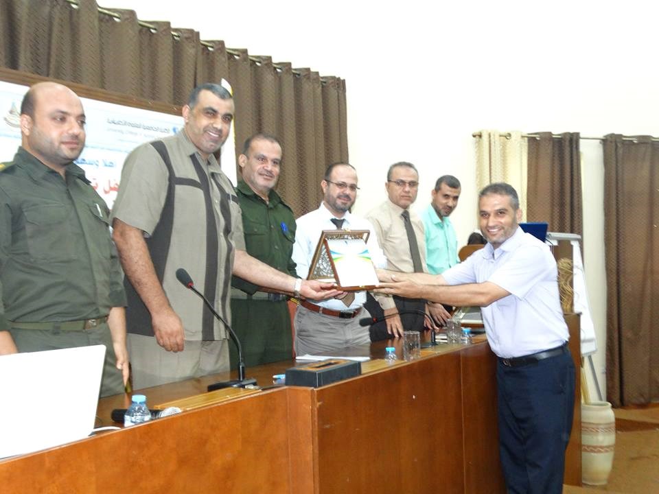 درع التكريم باسم اللجنة المنظمة للحفل (التوجيه السياسي، والخدمات الطبية، وكلية المجتمع).