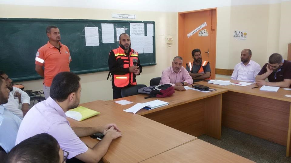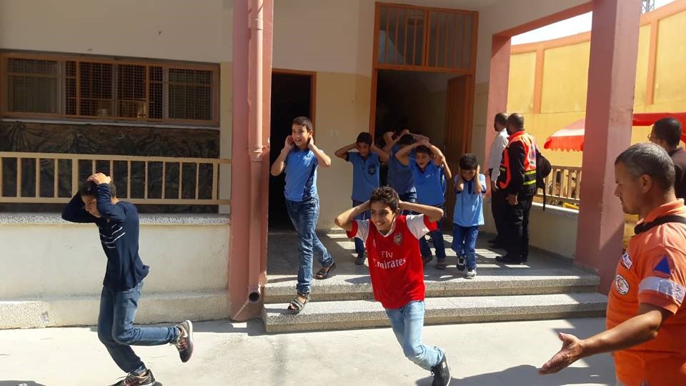 إدارة التدريب في مديرية الدفاع المدني في محافظة الوسطى تدريبًا على الإخلاء في مدرسة