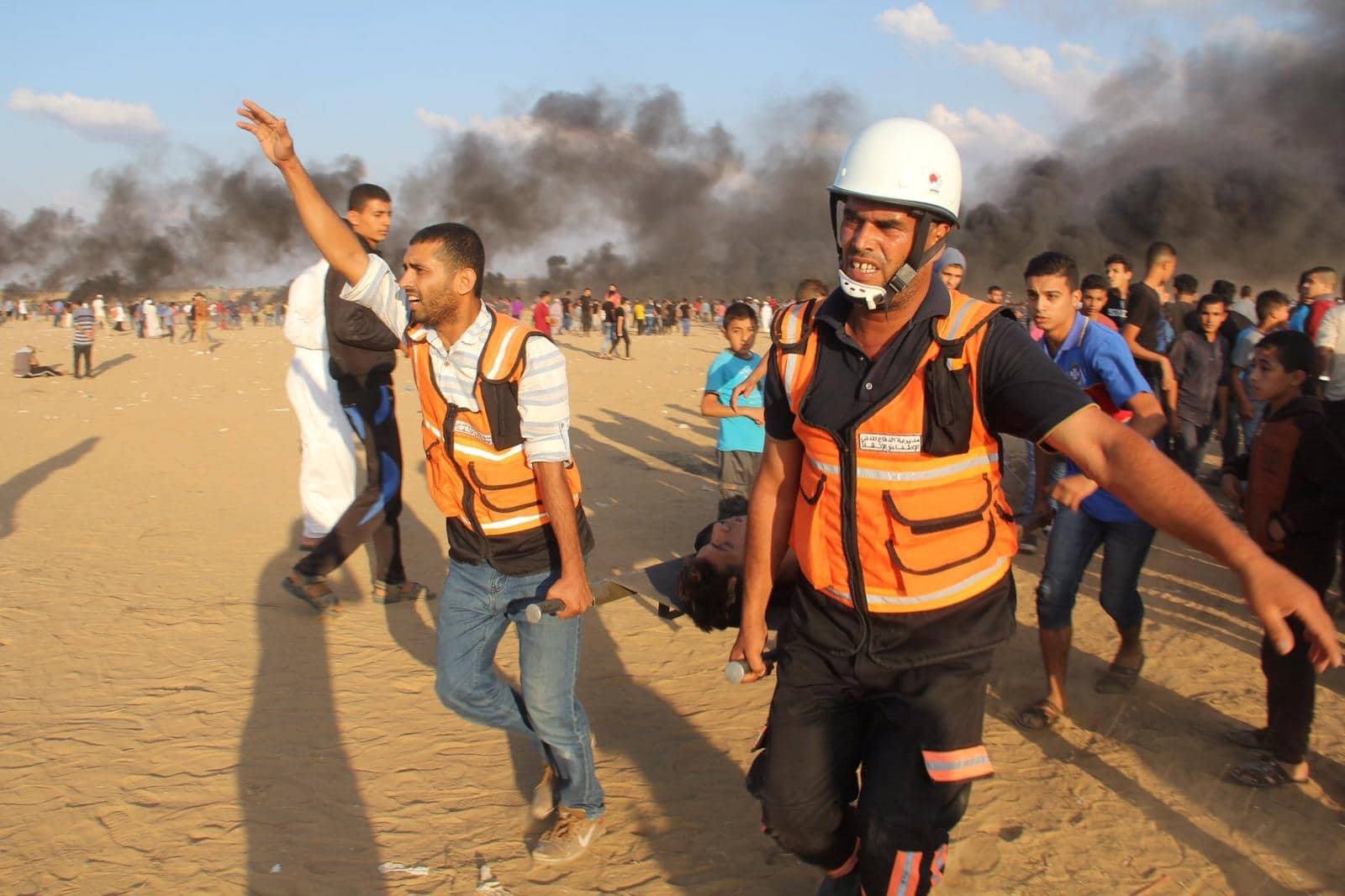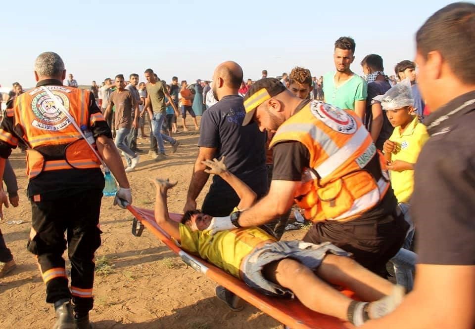 مسيرات العودة وكسر الحصار، قرب السياج الفاصل على امتداد الحدود الشرقية لقطاع غزة.