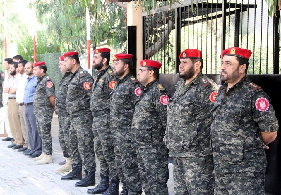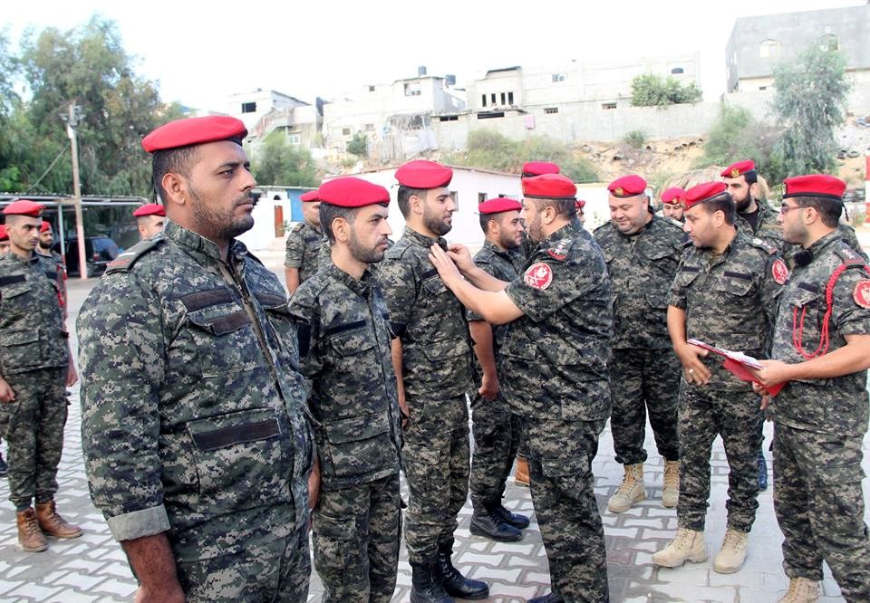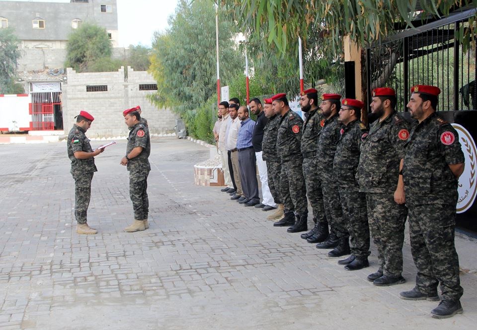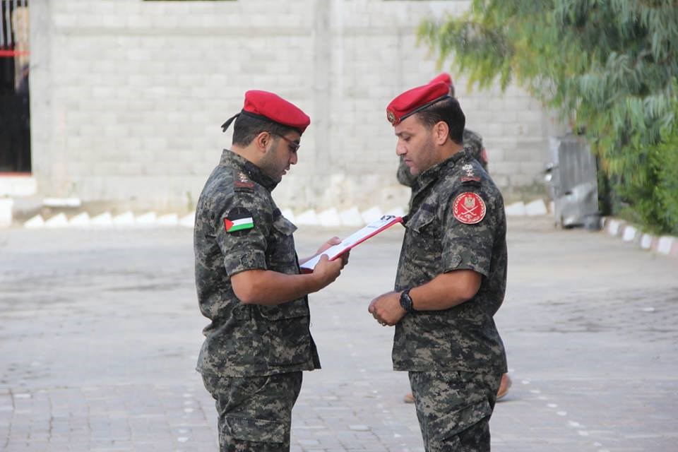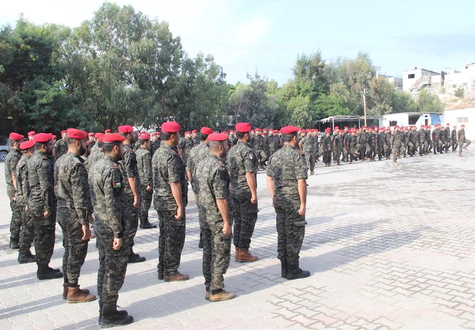 العسكرية العميد جهاد محيسن، والعقيد عمر أبو سنينة نائب قائد الجهاز وقائد الكتيبة