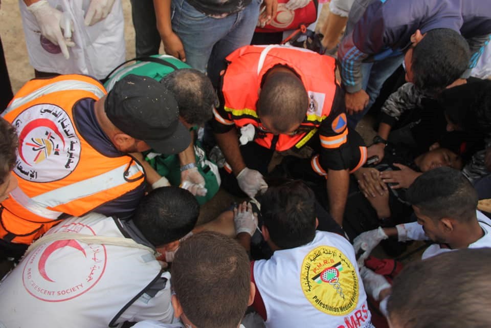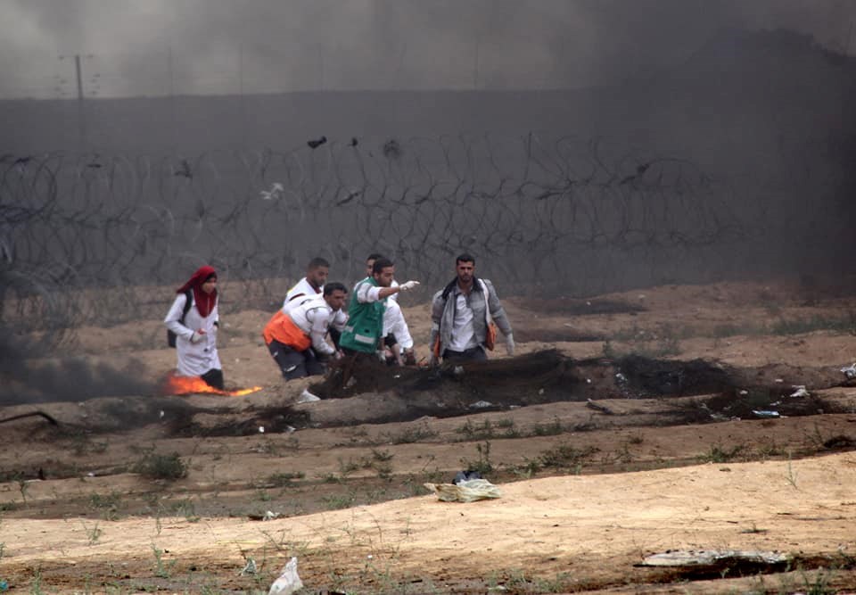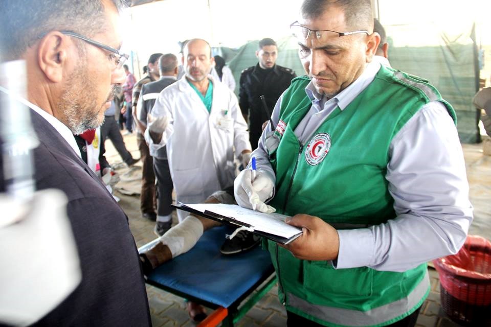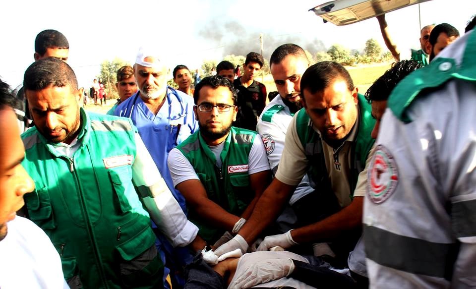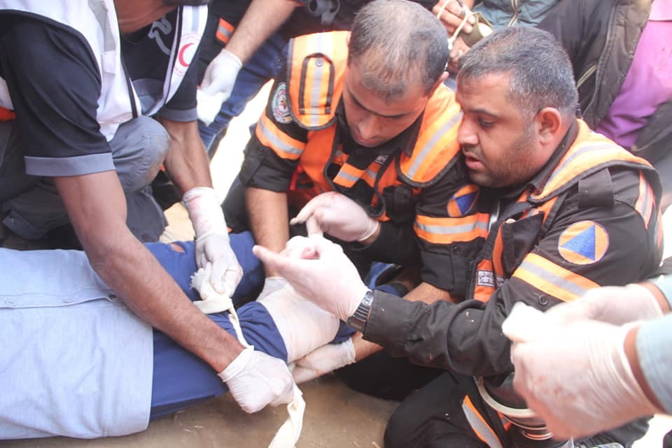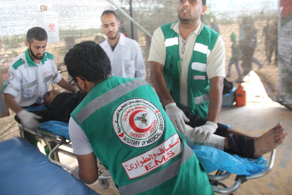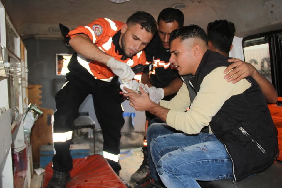 الإنساني والإغاثي، وهم "المسعف علي أبو عاصي بطلق ناري في الكتف، على الحدود