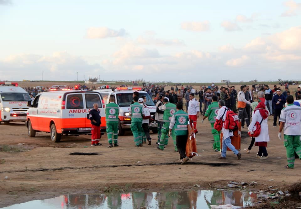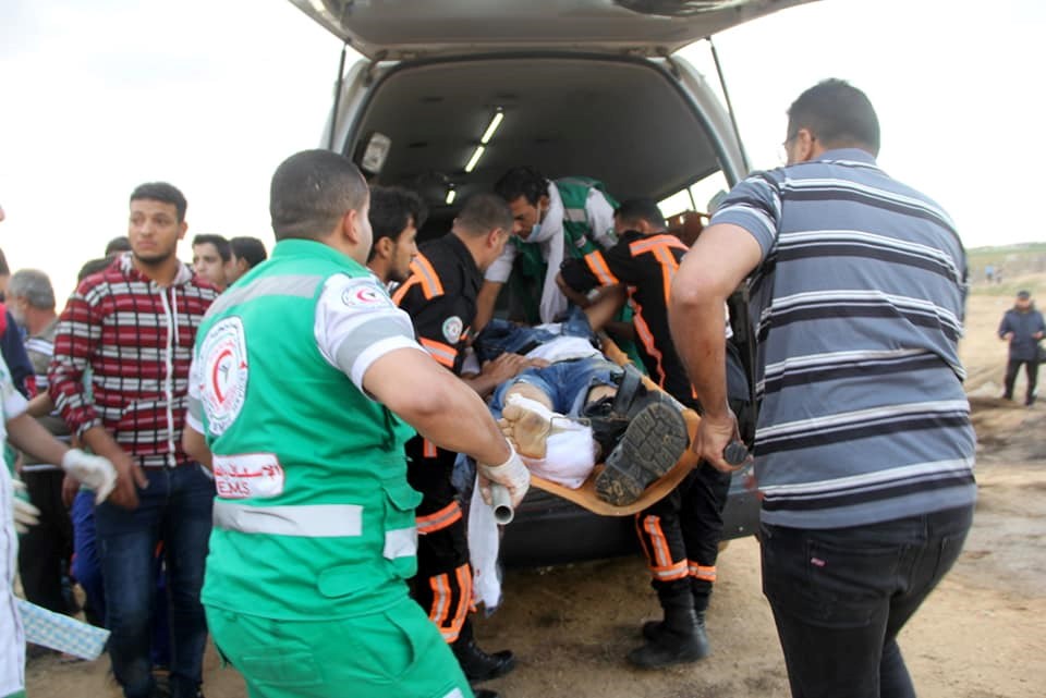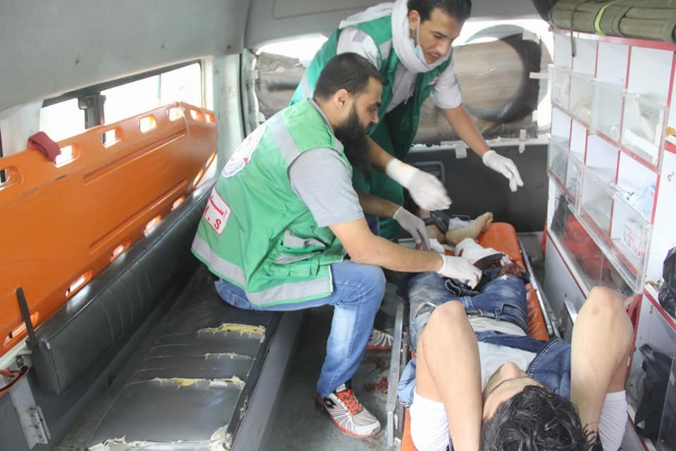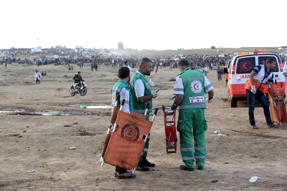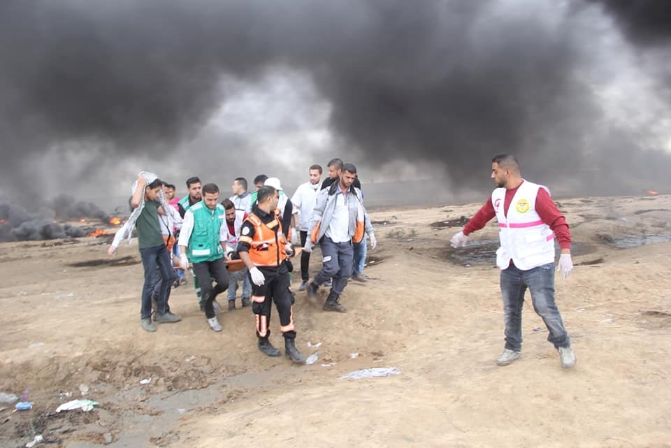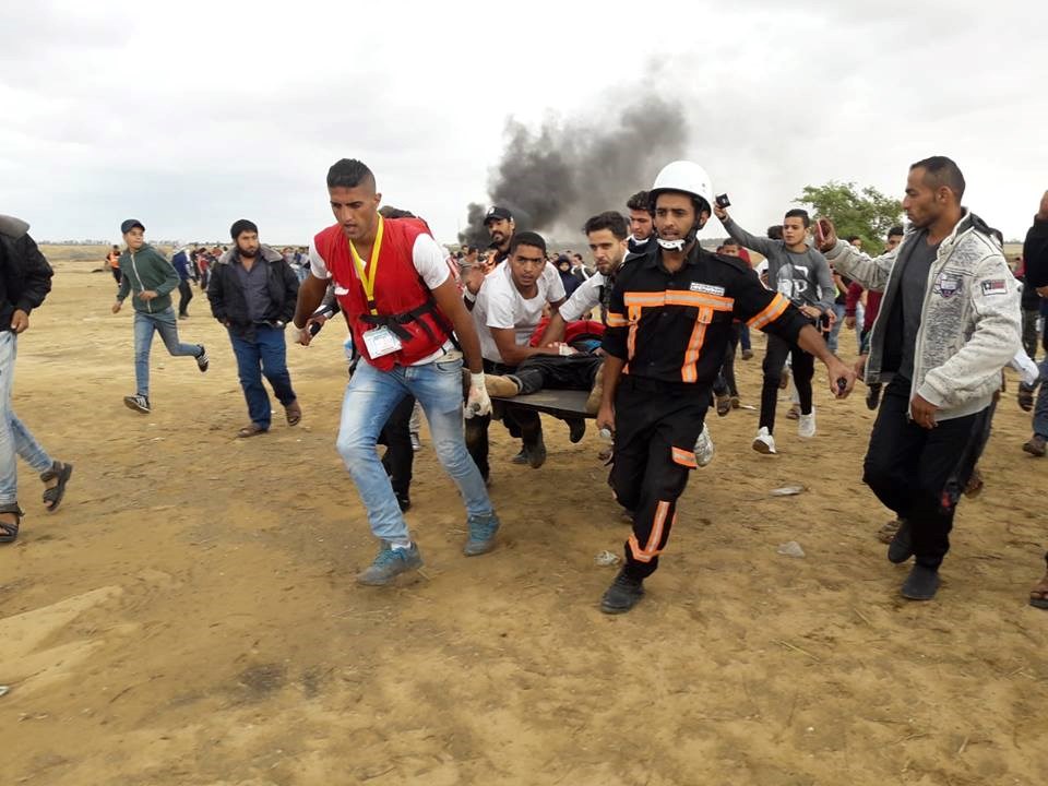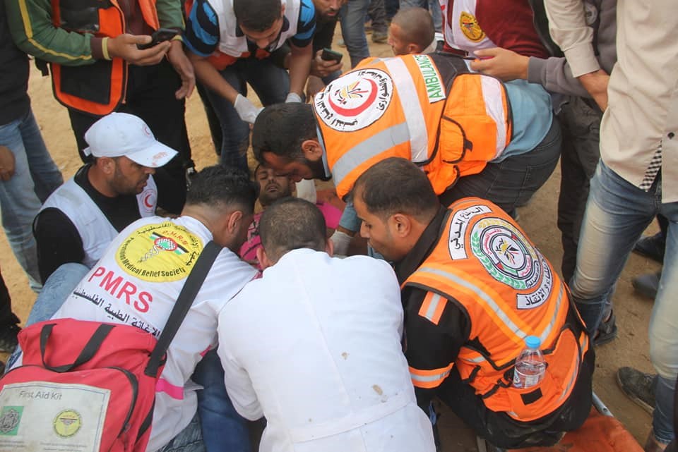 الإنساني والإغاثي، وهم "المسعف علي أبو عاصي بطلق ناري في الكتف، على الحدود
