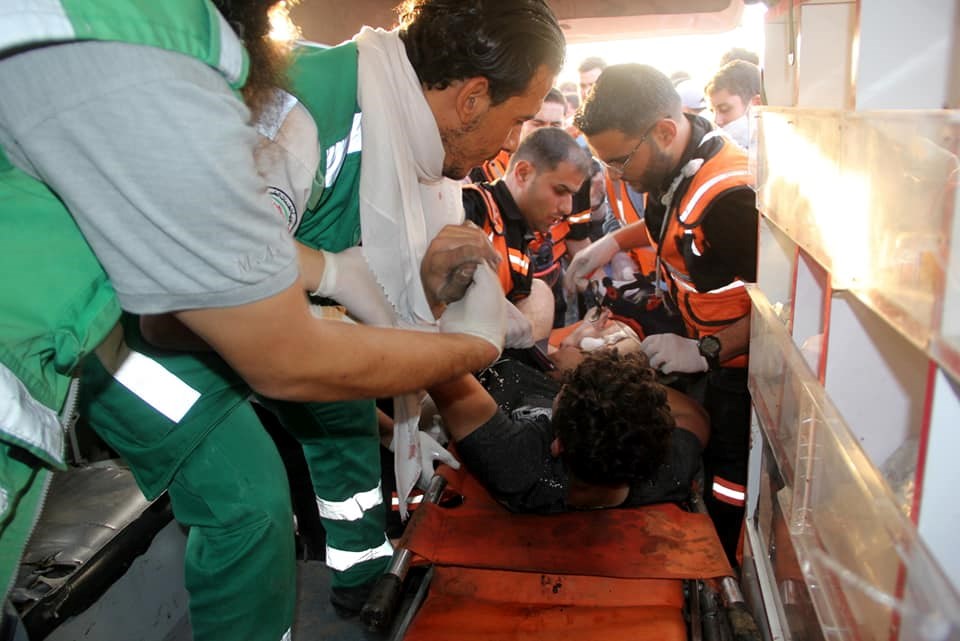 من الخيمة الطبية شرق مدينة غزة وتم نقلهم للمستشفى لتلقي العلاج.