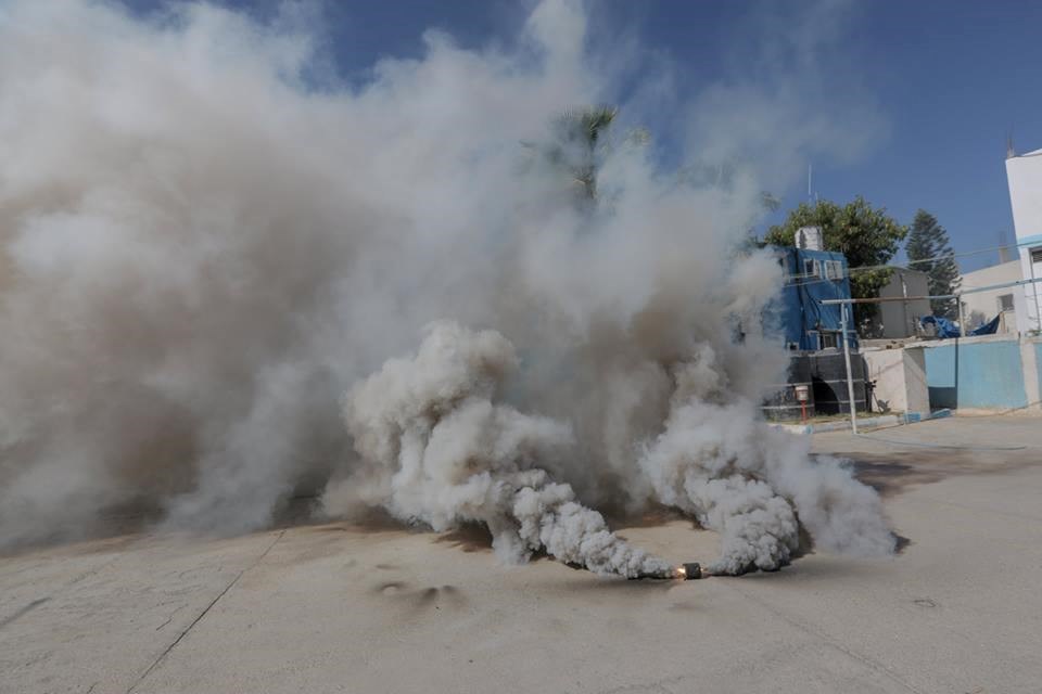 المناورة أصوات انفجارات وحركة لمركبات الشرطة، والدفاع المدني، وسيارات الإسعاف، بالإضافة