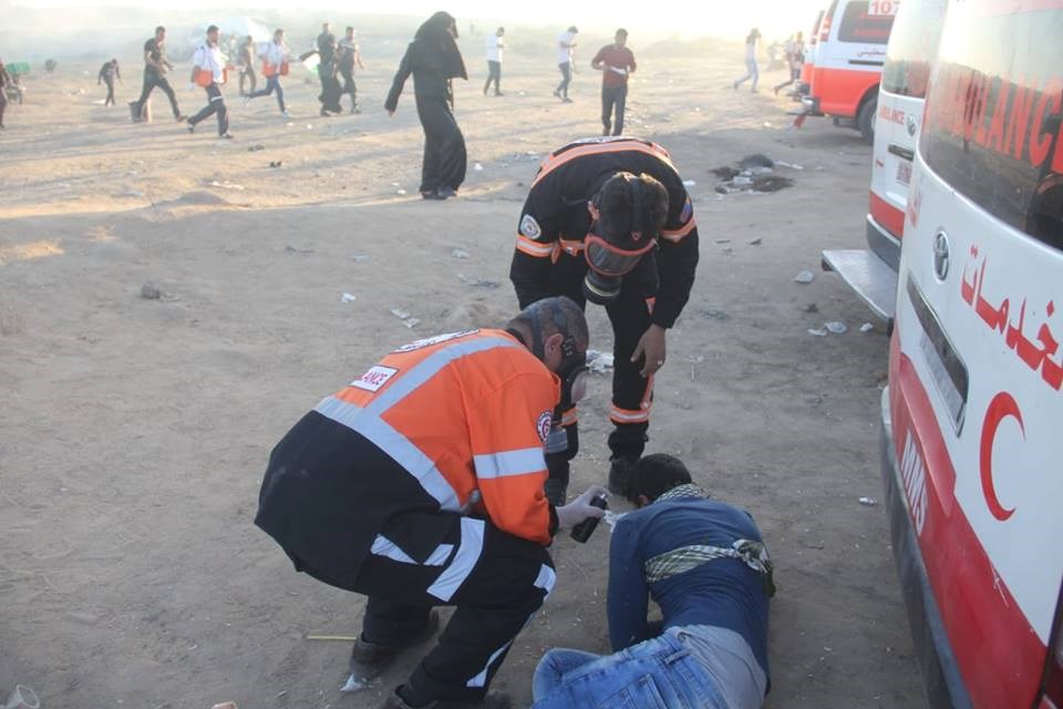 طواقم الدفاع المدني الفلسطيني مع 474 حادث إنقاذ واسعاف كان منها 442 حالة اختناق