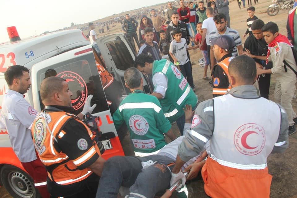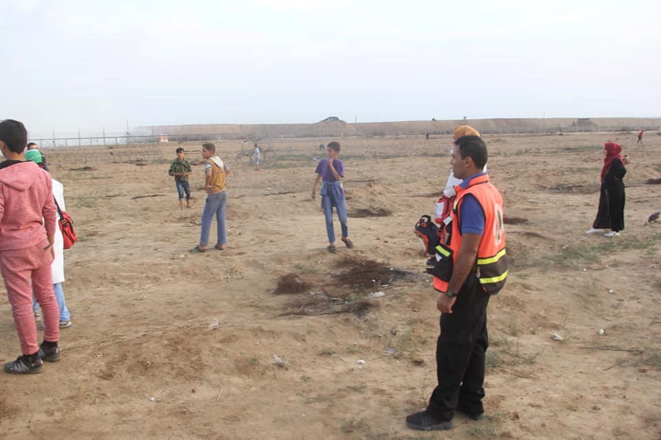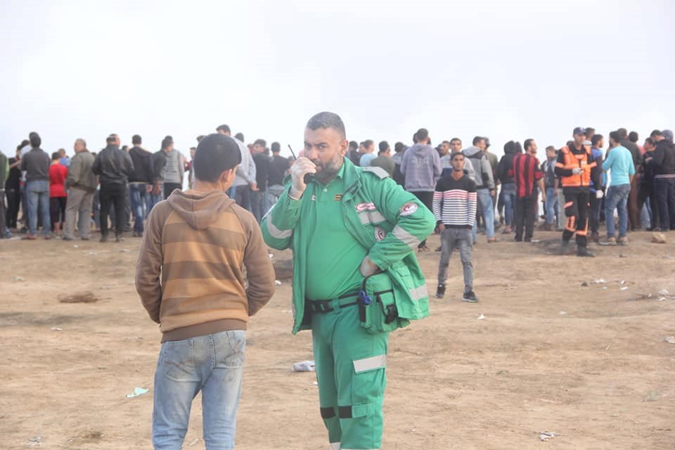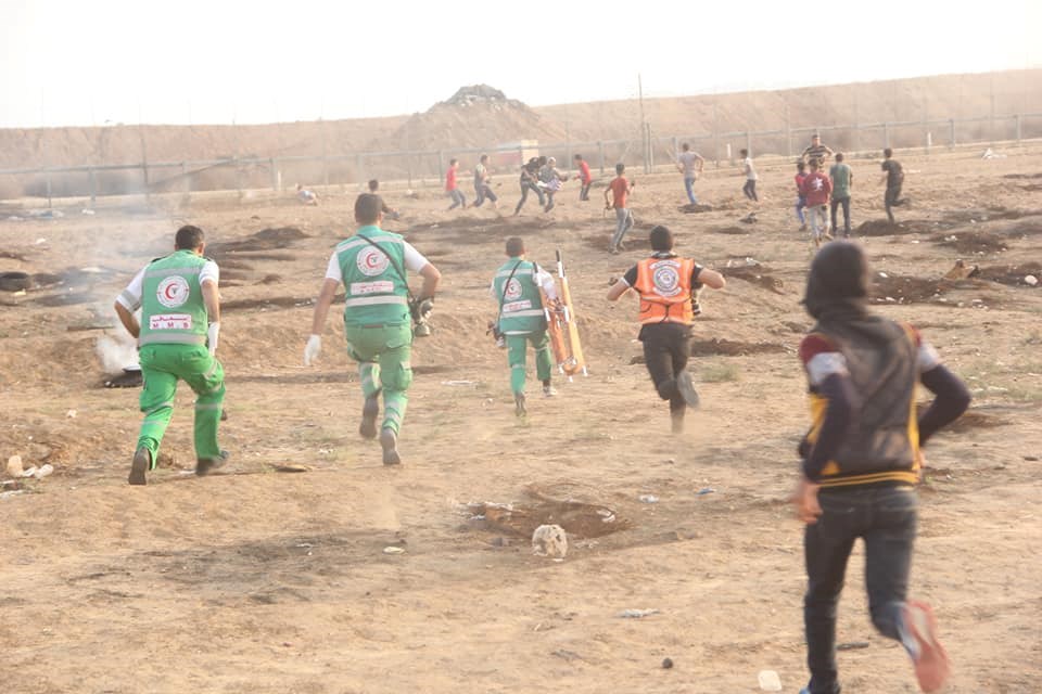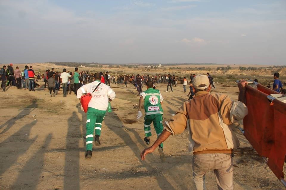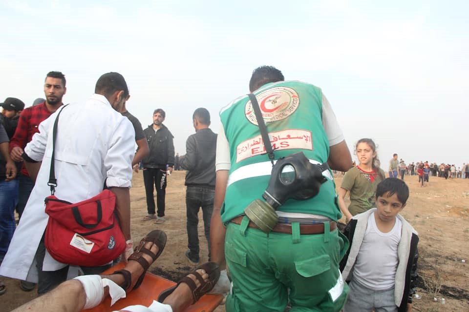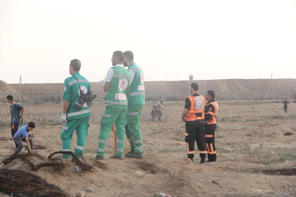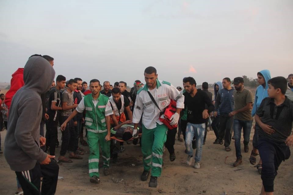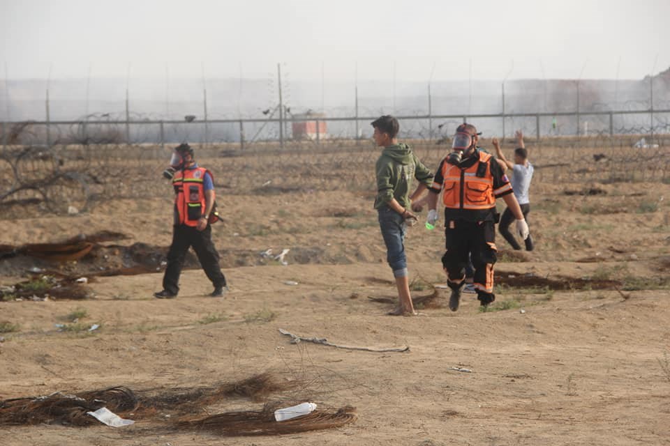 وإسعاف المصابين في الأسبوع الثالث والثلاثين من مسيرات العودة وكسر الحصار جمعة