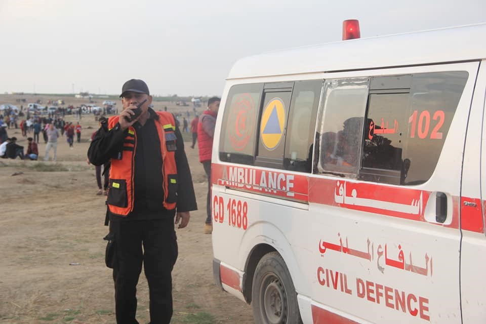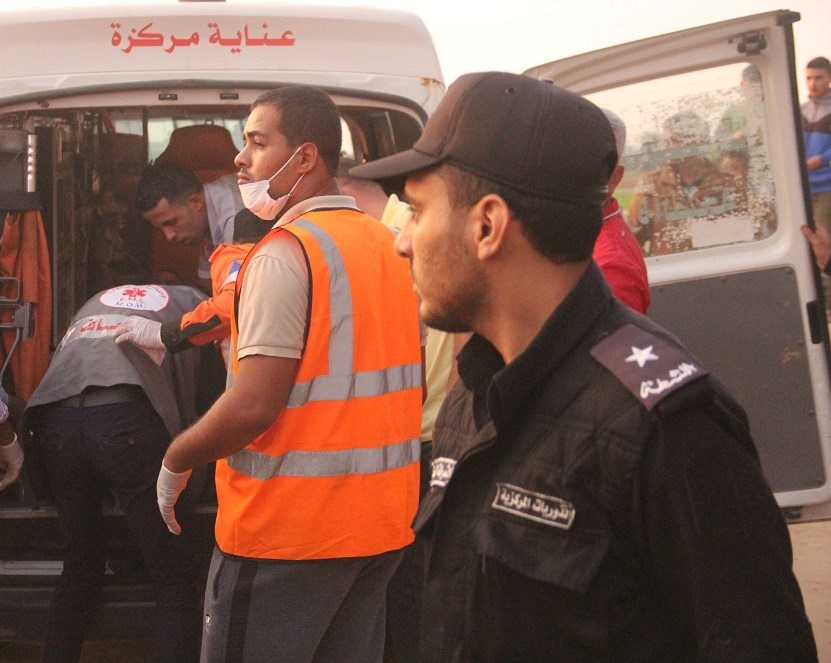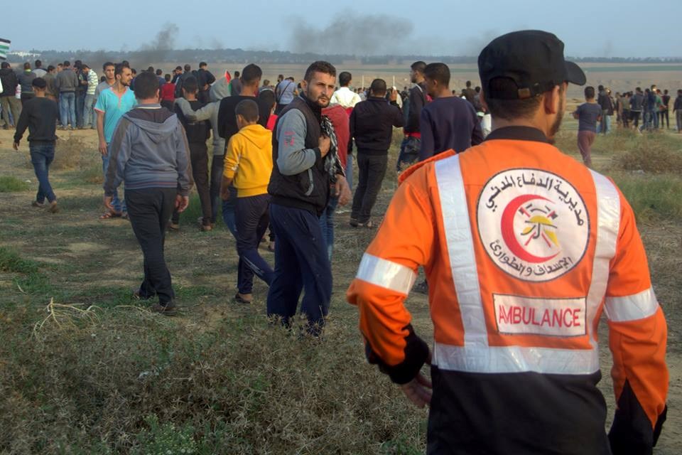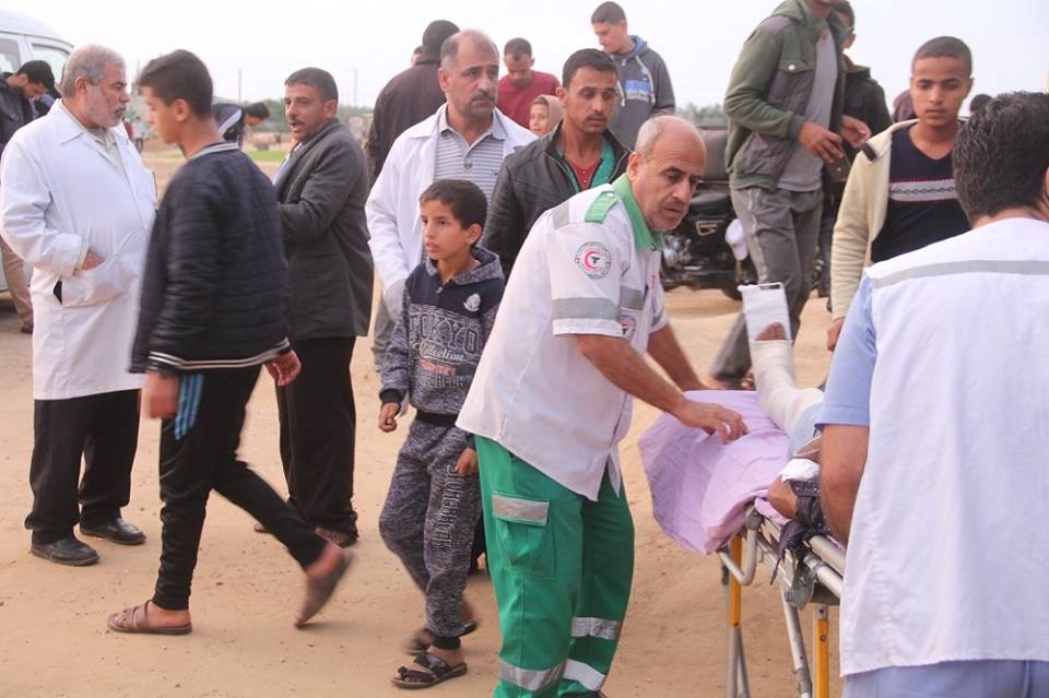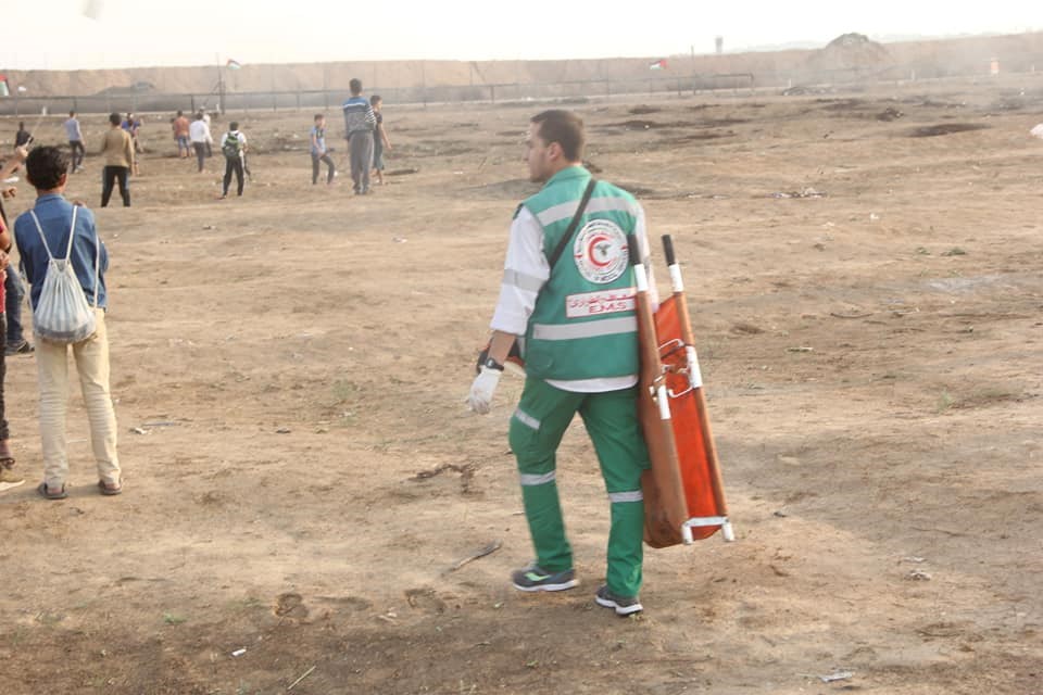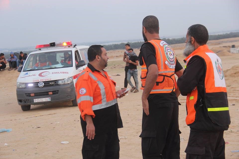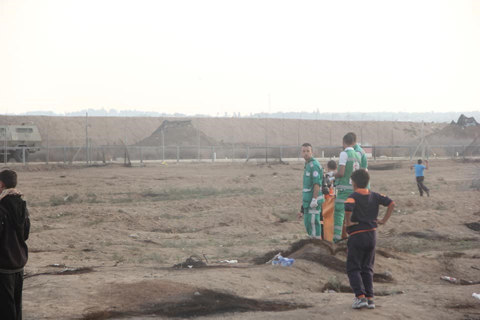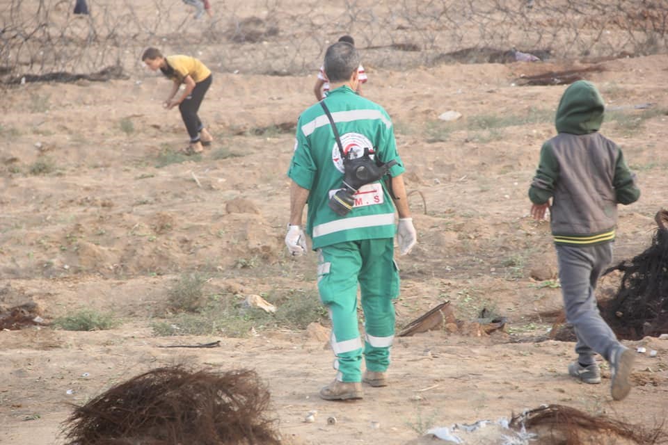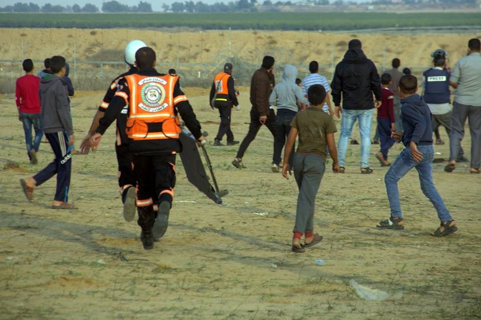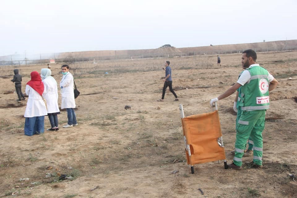 وإسعاف المصابين في الأسبوع الثالث والثلاثين من مسيرات العودة وكسر الحصار جمعة