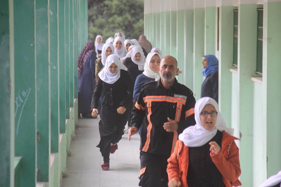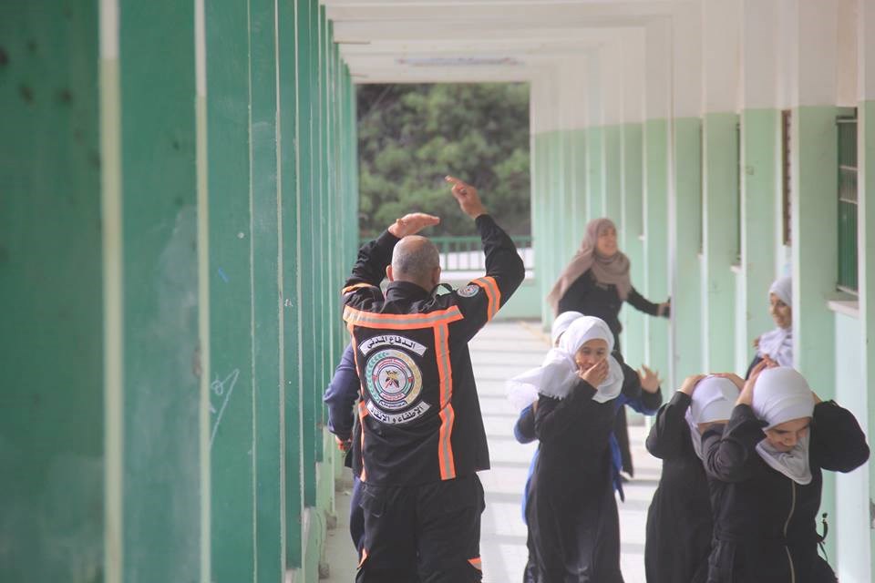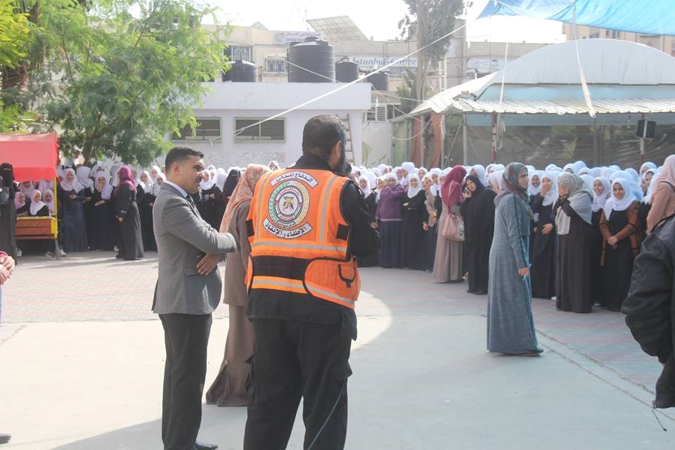 المديرية العامة للدفاع المدني بمحافظة رفح وبالتعاون مع مديرية التربية والتعليم،