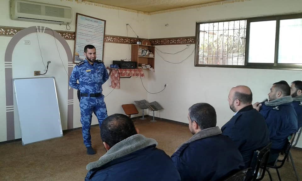 ورحب الشاويش بالحضور وقرأ عليهم اللائحة الداخلية المنظمة للعملية التدريبية وأوصى بضرورة الالتزام بمواعيد الدورة ونقل المادة المستفادة والعمل بها في إدارتهم.