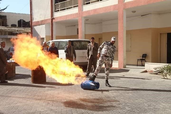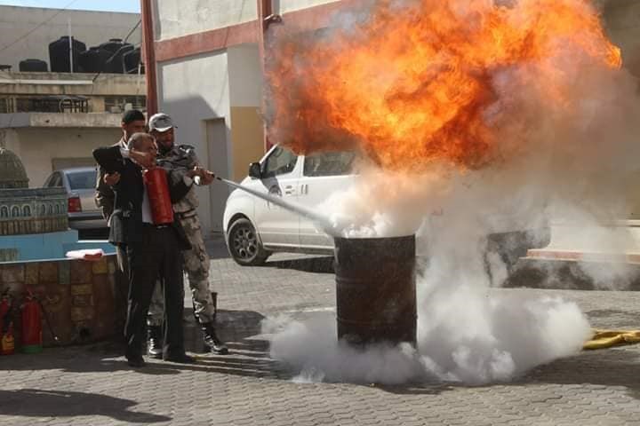 مديرية الدفاع المدني اليوم الخميس تدريبًا عمليًا على إطفاء الحرائق، لموظفي قسم الصحة