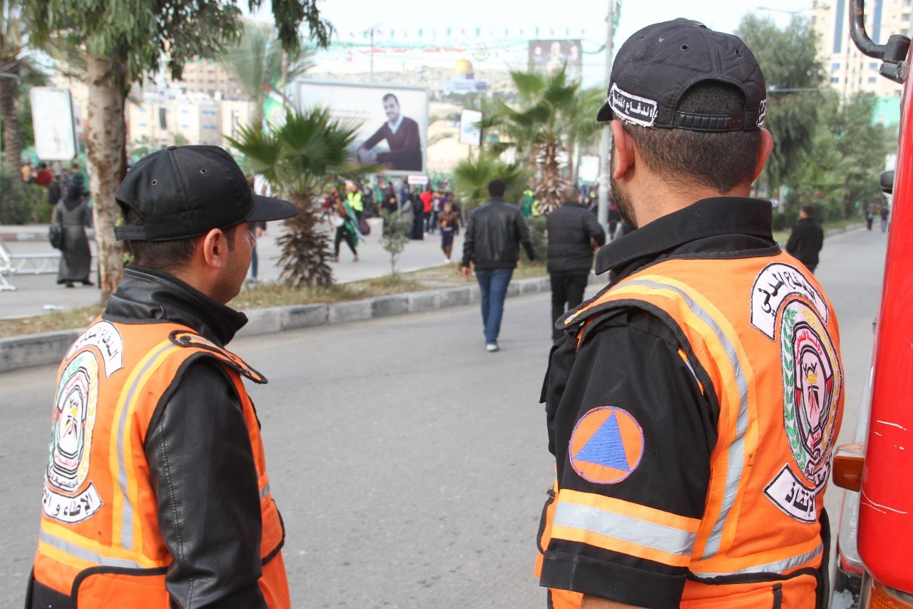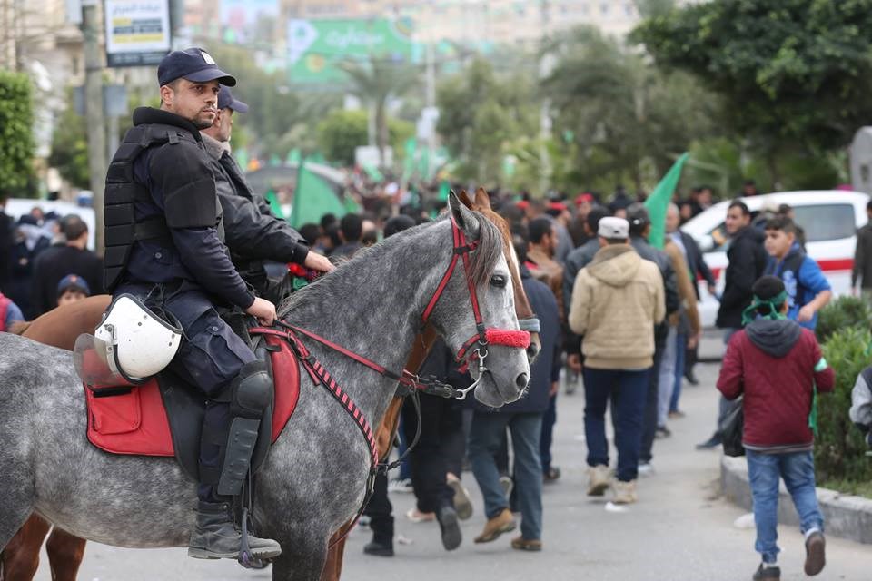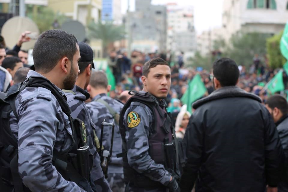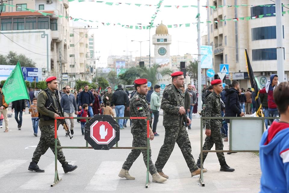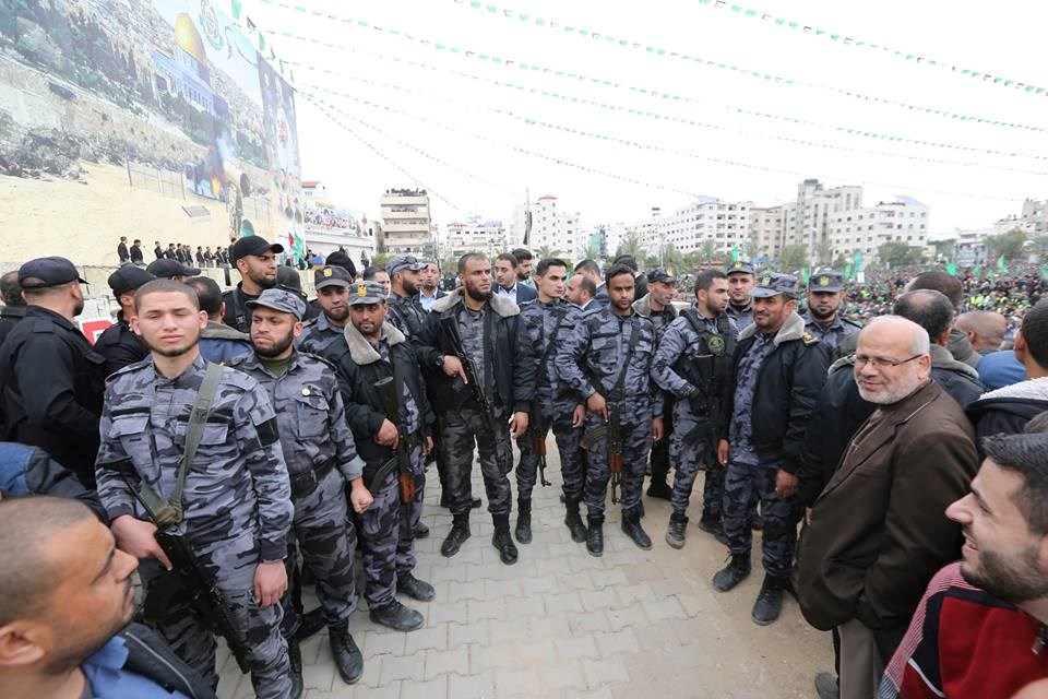 الأجهزة الأمنية في تأمين مهرجان انطلاقة حركة حماس.