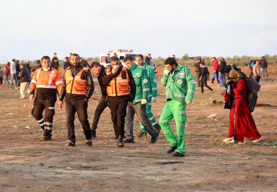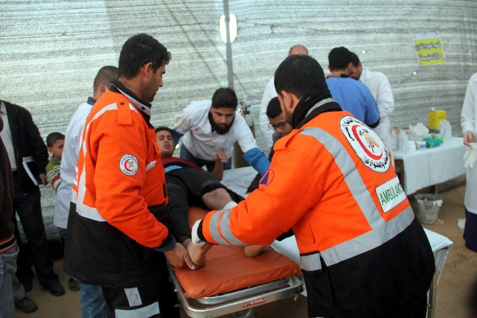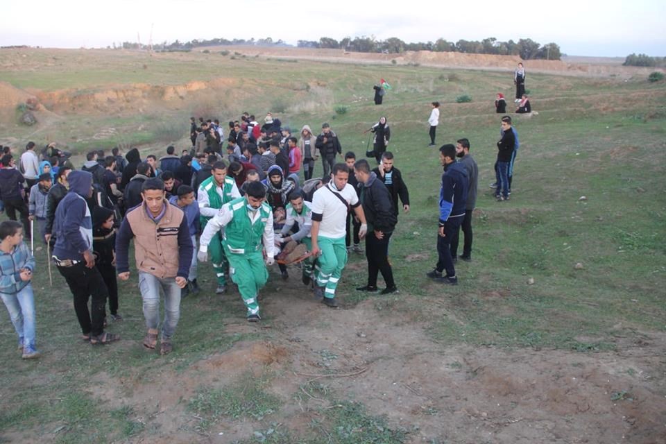 مخيمات العودة، و17 حالة أخرى تم نقلها بإسعافات الدفاع المدني إلى المستشفيات المختلفة