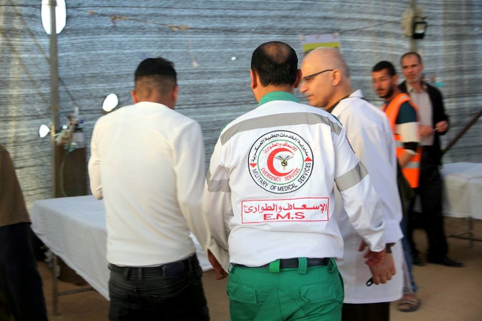 إن المسعفين "أحمد عبيد وطلال طه"، وهما من طواقمها العاملة في الميدان أصيبا