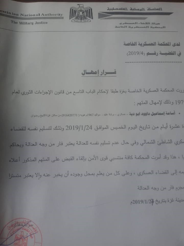 24/1/2019 لتسليم نفسه للقضاء العسكري.