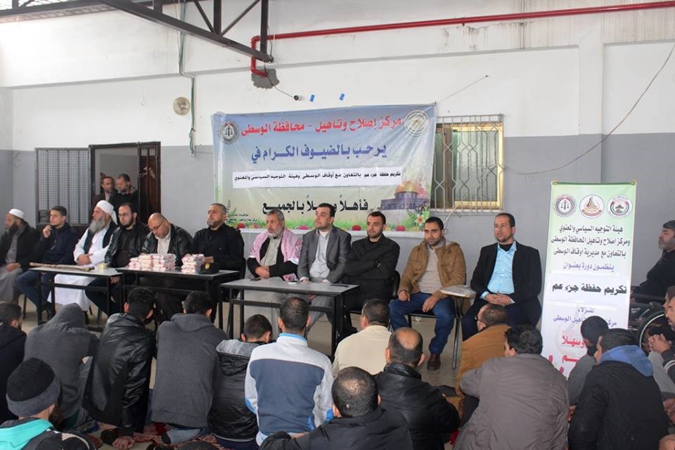 وحضر حفل التكريم العقيد إسماعيل الأسطل مدير إدارة المحافظات في التوجيه السياسي، والرائد إياد الهباش مدير مركز الإصلاح والتأهيل في الوسطى، والرائد محمد جبر مسئول ملف النزلاء في هيئة التوجيه السياسي، والنقيب محمد القرعان مسئول ملف النزلاء في الوسطى، والشيخ محمد الناعوق رئيس قسم التحفيظ في أوقاف الوسطى، والشيخ عبد المجيد أبو عمرة.