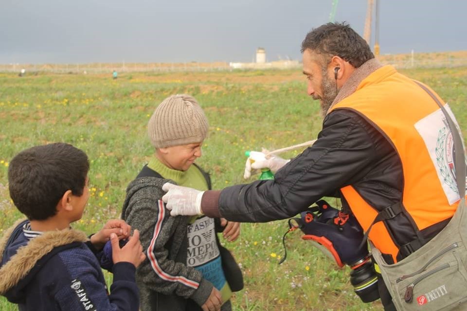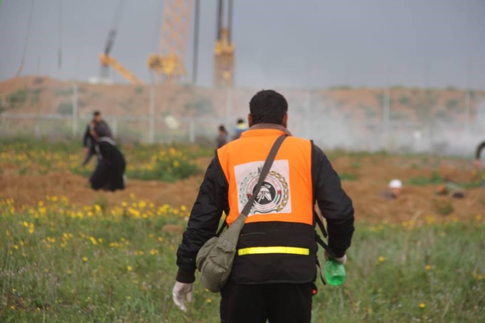 على إسناد الجماهير وإسعاف المصابين في جمعة "باب الرحمة"، قرب السياج الفاصل
